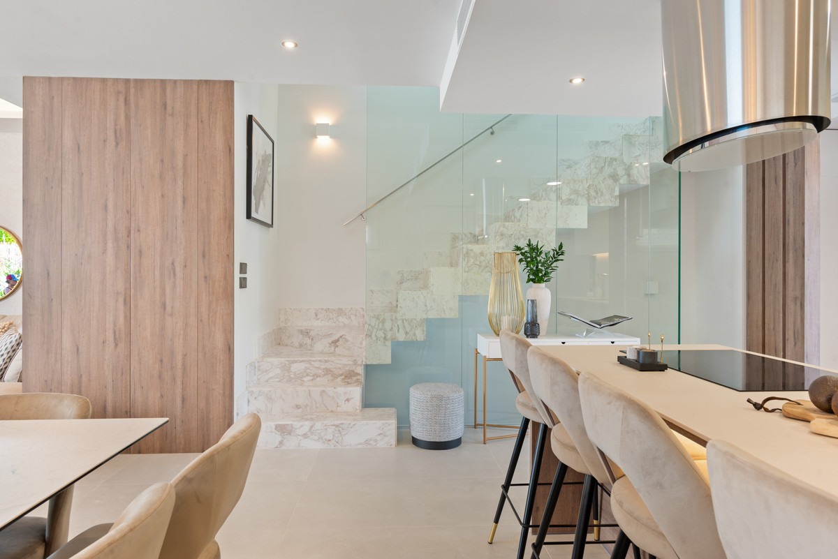 This modern townhouse for sale in Banus Bay Residences offers an exceptional combination of luxury and coastal living, just 150 metres from the beach in one of Marbella’s most exclusive areas. Located within the gated and prestigious Banus Bay community, the four-level home features five spacious bedrooms and four bathrooms, spread across 265 square metres of thoughtfully designed interiors. Completed in 2021, the property blends sleek contemporary architecture with premium finishes, creating a comfortable yet sophisticated living environment perfect for a holiday home or full-time residence by the sea.