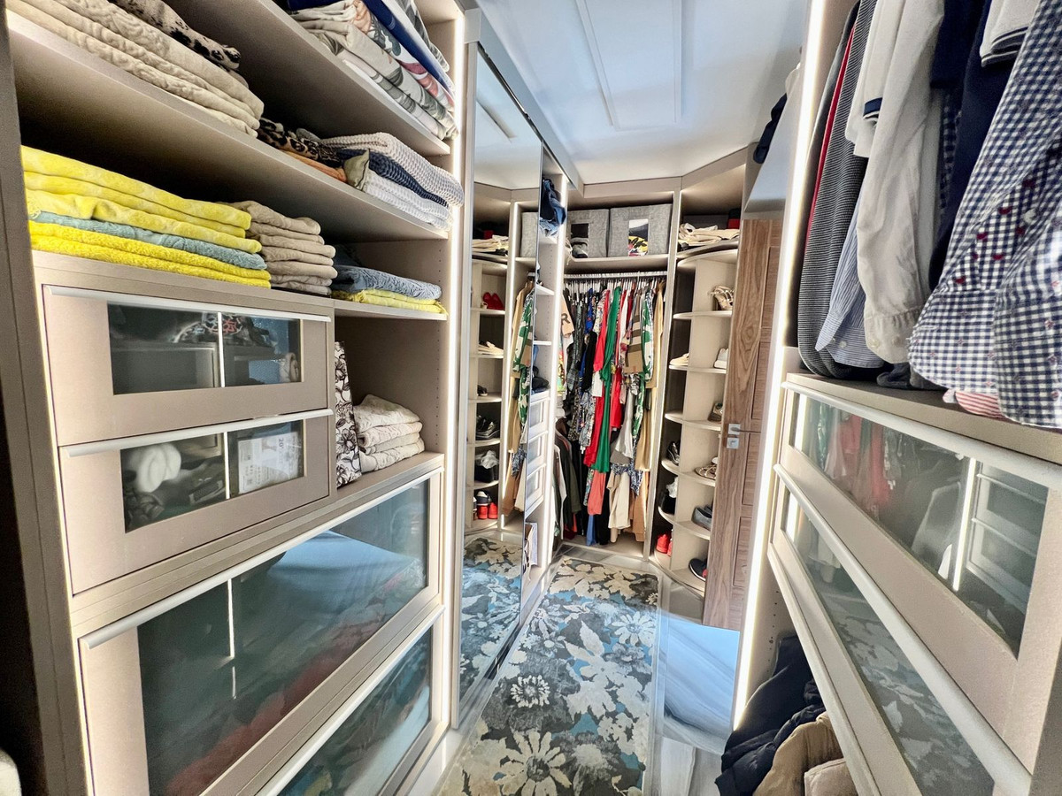Spacious ground floor apartment with garden west facing very bright located on the beachfront next to the promenade of San Pedro de Alcantara. Area with many restaurants, tennis and paddle sports club, boulevard and only 4 minutes from Puerto Banús. Closed urbanization with 24 hour security, two large lake-type pools surrounded by large and well-kept community gardens. The apartment has a living-dining room with direct access to the porch, to the gardens and swimming pools of the urbanization, fully equipped kitchen with terrace and laundry room, master bedroom en-suite with dressing area and bathroom with shower , another three very spacious and bright double rooms, two guest bathrooms. The apartment has never been recently reformed to high standarts. It has a large underground parking space and storage room available for private use.