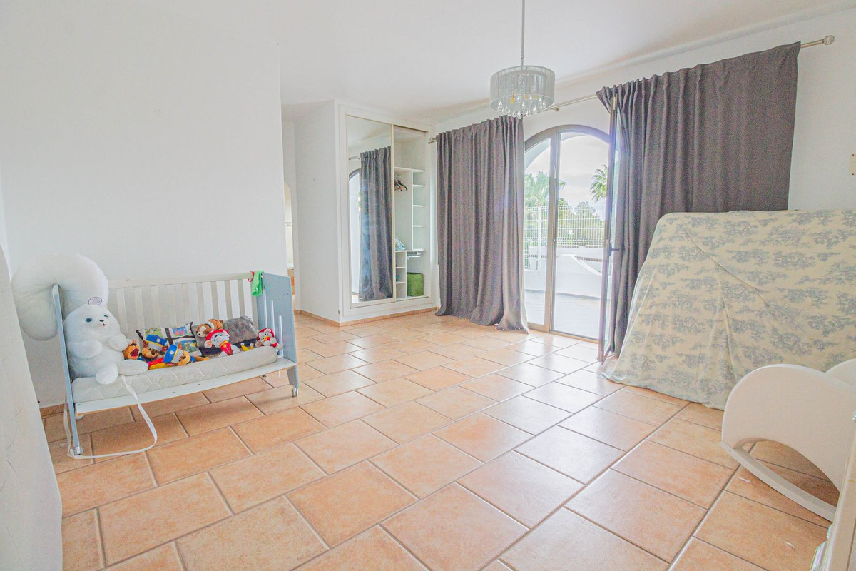 As you make your way upstairs, you will discover a bright master bedroom that will become your personal retreat. With a large dressing room and en-suite bathroom, this space is ideal for relaxing after a long day. The spacious terrace off the master bedroom offers spectacular views of Sotogrande, a privileged corner where you can enjoy moments of peace and beauty. On this floor, you will also find another terrace, two additional bedrooms and a complete bathroom, designed to offer maximum comfort.