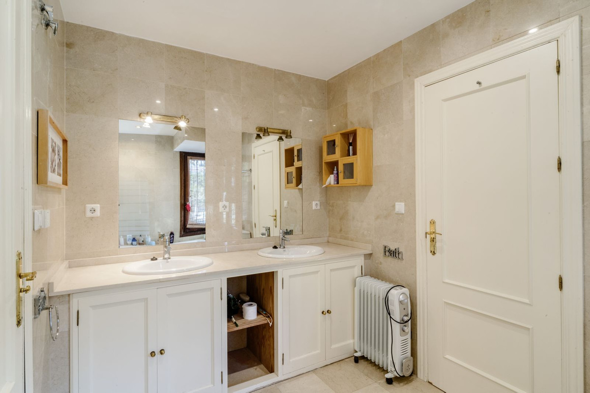 Step inside and be captivated by the villa's timeless elegance and modern comforts. A welcoming indoor patio sets the tone, leading you to a very large kitchen complete with a spacious dining area that effortlessly extends onto a wonderful, expansive terrace. This seamless indoor-outdoor flow is perfect for elegant entertaining and delightful al fresco dining amidst the Marbella climate. Throughout the villa, enjoy the warmth and sophisticated feel of wooden floors and the ultimate comfort of underfloor heating, ensuring a pleasant ambiance in every season. The spacious living area boasts impressive high ceilings, enhancing the sense of grandeur and openness. Beyond the kitchen, the villa features incredible additional terrace areas, artistically adorned with lush wild vine plants, providing picturesque spots for relaxation and enjoyment.