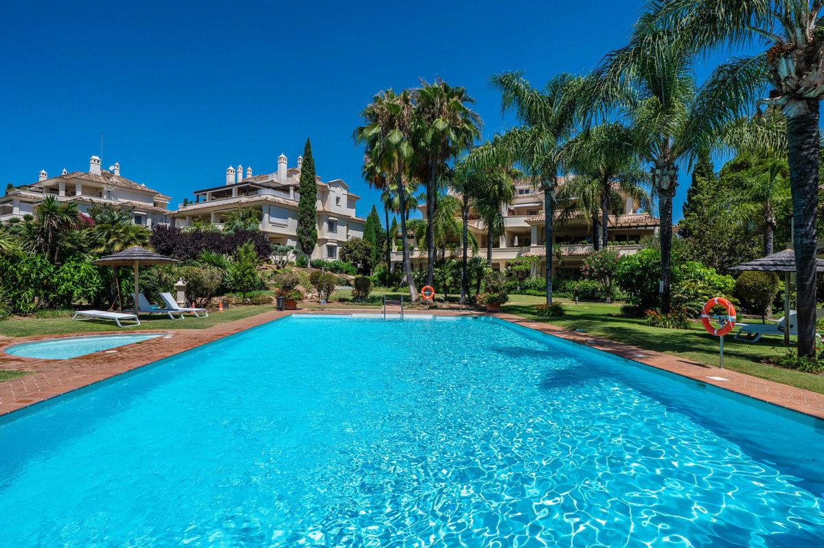 Located in the prestigious gated community of Las Alamandas, this spacious 3-bedroom duplex penthouse offers a perfect blend of luxury, privacy, and security in the heart of Nueva Andalucía — just minutes from Puerto Banús and within walking distance to renowned golf courses like Los Naranjos and Las Brisas.