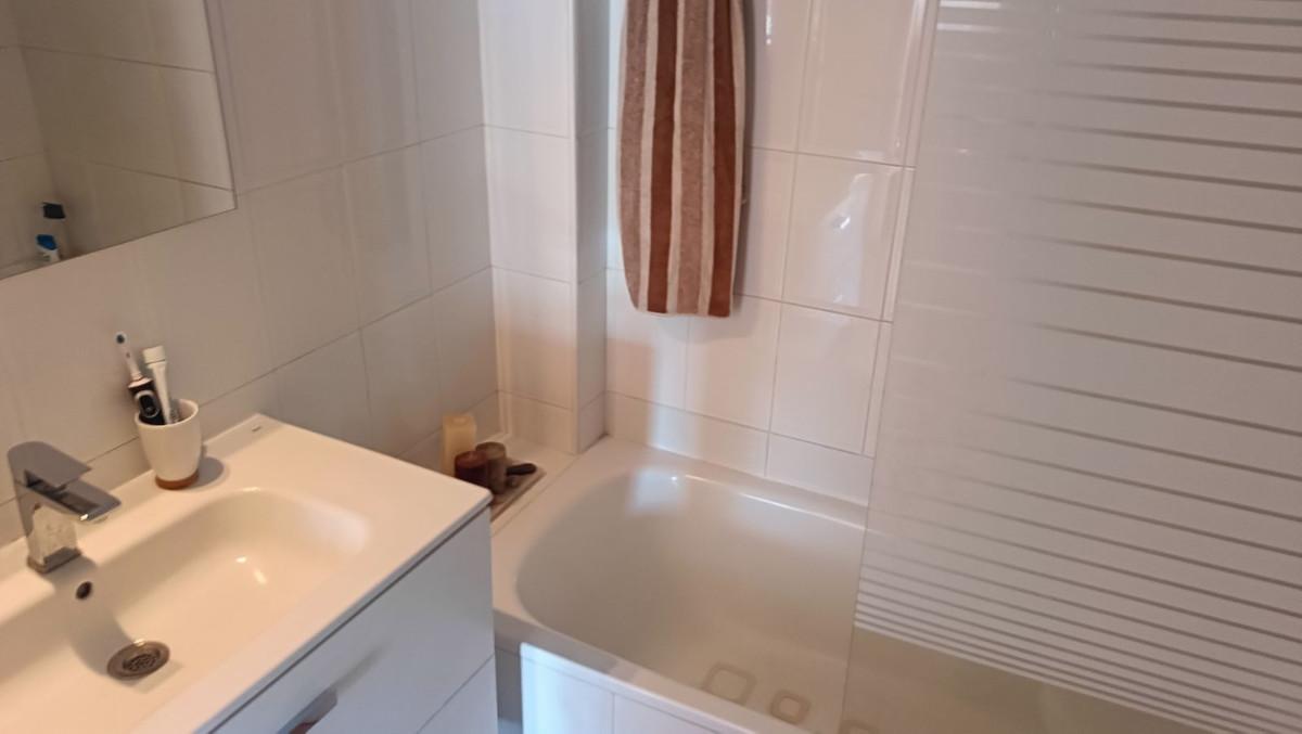 Magnifique appartement 1 chambre avec vue incroyable sur la mer, très central proche de tout, arrêt de train, plage, commerces, ensoleillé toute la journée, facile à louer toute l'année, dispose d'une grande chambre avec vue sur la mer, séjour très lumineux et cuisine séparée, l'immeuble dispose d'un ascenseur et d'une piscine commune et d'un débarras privé.