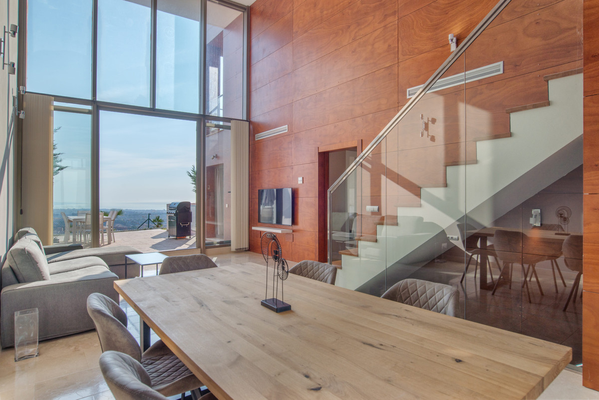 La Villa a 3 étages et dispose de 2 grandes chambres au rez-de-chaussée, avec salle de bain, cuisine, salon et terrasse - jardin avec une vue imprenable sur toute la côte Est et les montagnes.