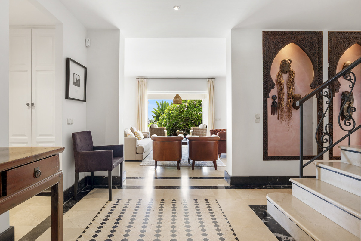 Cette villa à Nueva Andalucía combine magnifiquement l'architecture andalouse avec des accents antiques et des touches marocaines subtiles, créant une maison pleine de chaleur et de caractère.