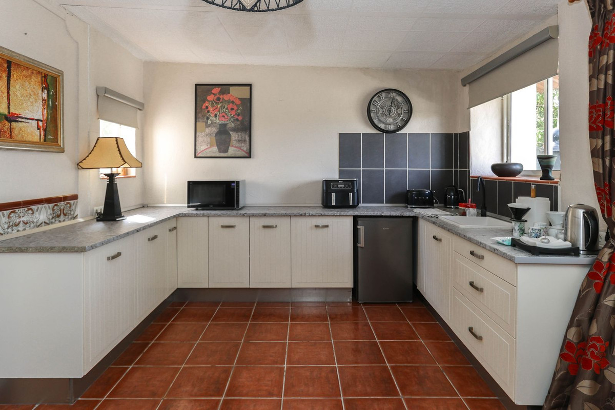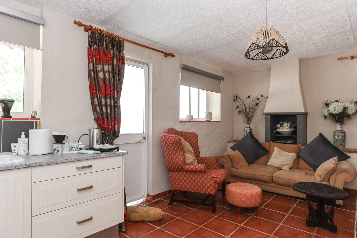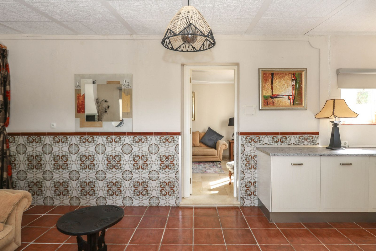 En entrant dans la cuisine, vous découvrirez la partie originale de la propriété, ornée d'une cheminée traditionnelle qui la met en valeur. La cuisine entièrement équipée, avec son coin salon confortable, en fait un agréable espace de vie convivial. La buanderie se trouve sur le côté de la cuisine. Le salon, situé au centre de la propriété, communique avec la cuisine et donne directement accès à l'une des chambres. Une salle de bains et une deuxième chambre se trouvent également dans cette partie de la propriété.