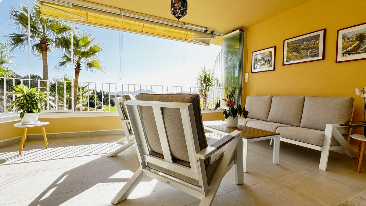 Le complexe immobilier est exceptionnellement bien entretenu, offrant une sensation d'espace et une vue imprenable sur le golf et les montagnes. Il s'apparente davantage à un manoir qu'à un complexe d'appartements espagnol typique. Les équipements communs comprennent le Wi-Fi dans tout l'immeuble, une mini-salle de sport, un sauna, une laverie, des espaces de détente couverts, des jardins tropicaux et une piscine attrayante. À voir absolument.