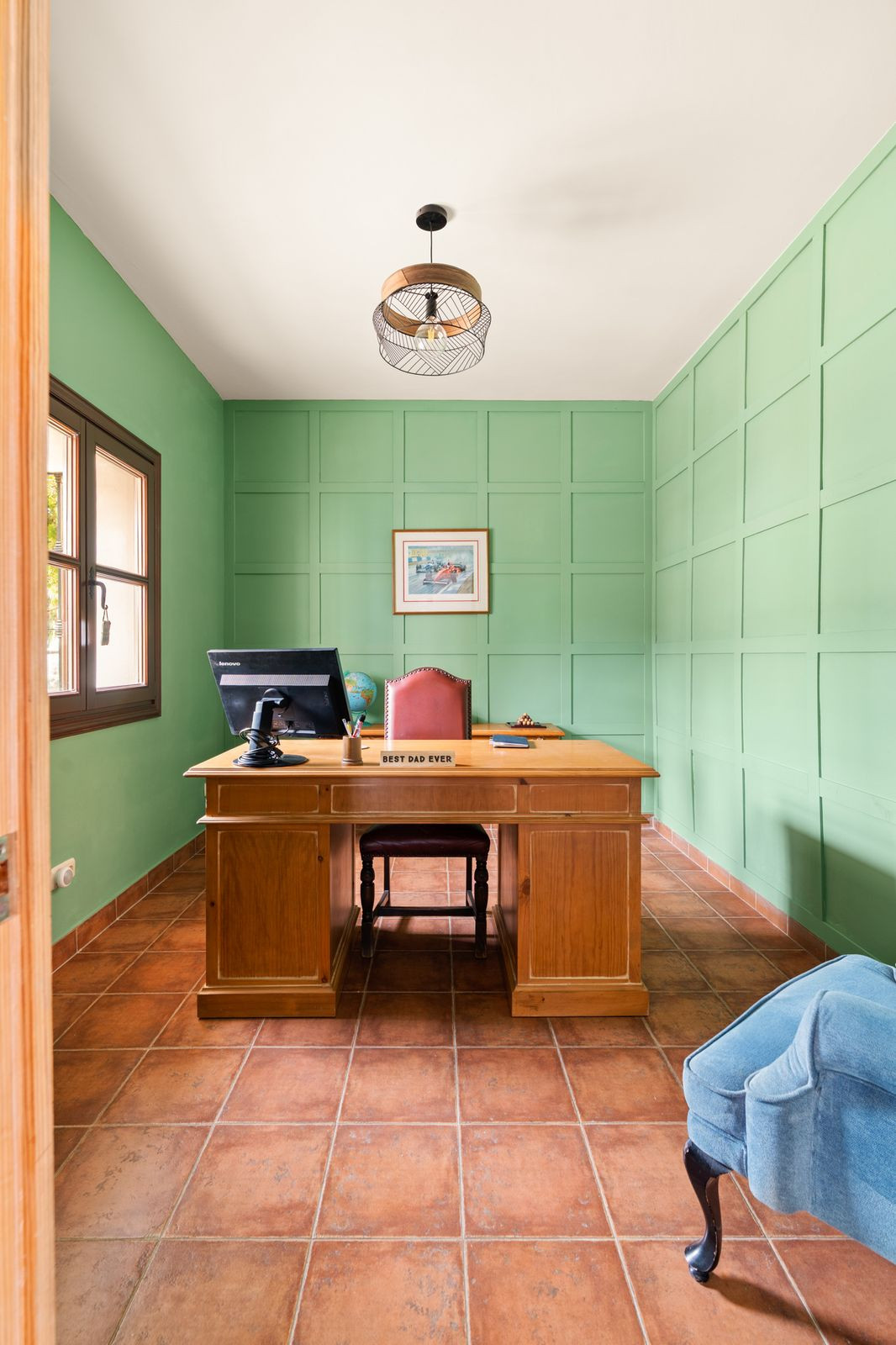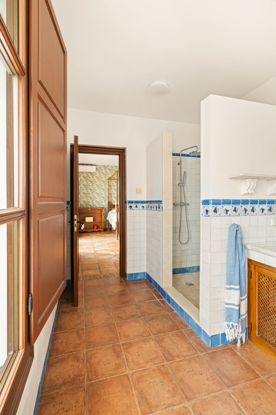 Le premier étage abrite trois très grandes chambres, chacune avec salle de bain attenante et terrasse privée donnant sur la mer et le golf. Une chambre dans la tour, avec vue panoramique, offre un espace unique pour un studio de yoga, un bureau ou un séjour privé.