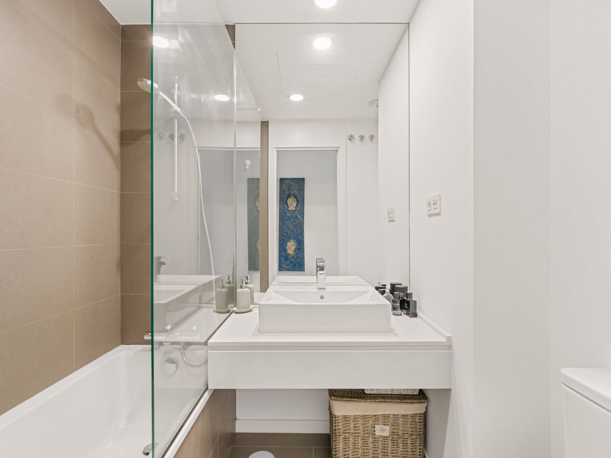 A l'arrière de l'appartement se trouve une chambre d'amis, une salle de bain d'invités ainsi que la chambre principale avec salle de bain attenante.