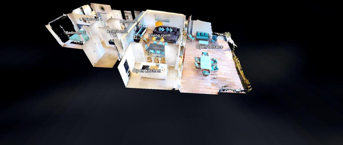 Cette maison comprend deux chambres et deux salles de bains, un spacieux séjour et une grande terrasse. Les chambres s'ouvrent sur un magnifique jardin privé. L'intégration harmonieuse des espaces intérieurs et extérieurs vous permet de profiter du climat méditerranéen et de la vue sur les jardins luxuriants de l'urbanisation.