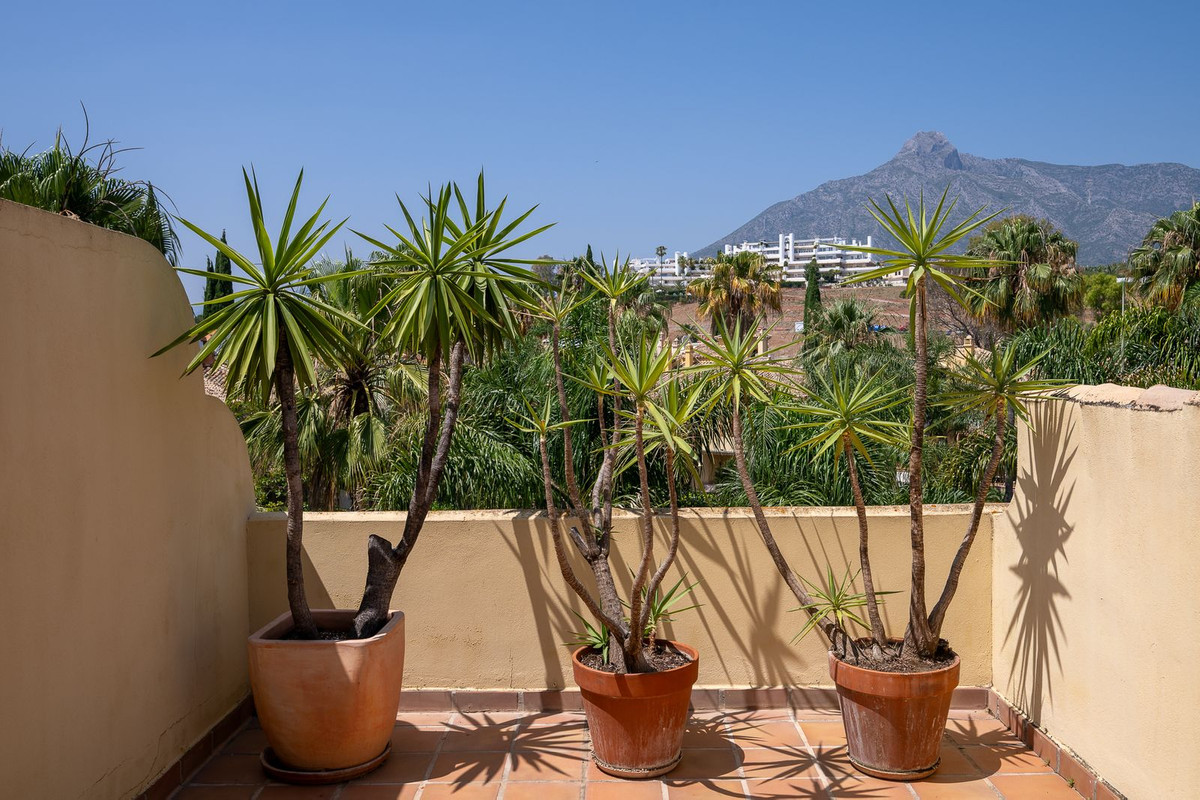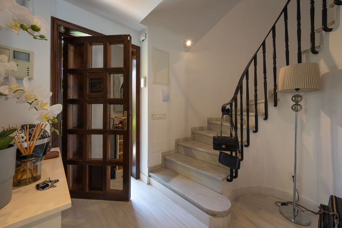 EXCLUSIVITÉ ! Découvrez cette magnifique maison jumelée située dans une urbanisation privée exclusive de style andalou, en plein cœur du très convoité Golden Mile de Marbella. Un véritable bijou alliant charme traditionnel et modernité, grâce à une rénovation partielle soignée.