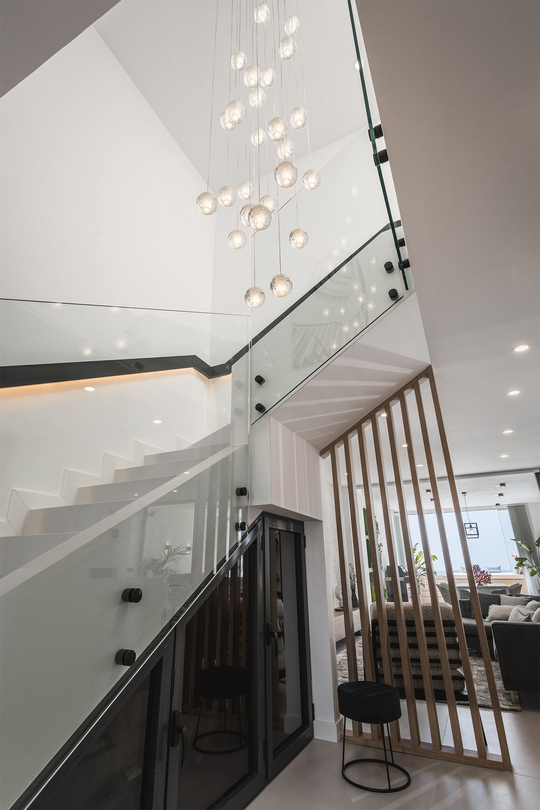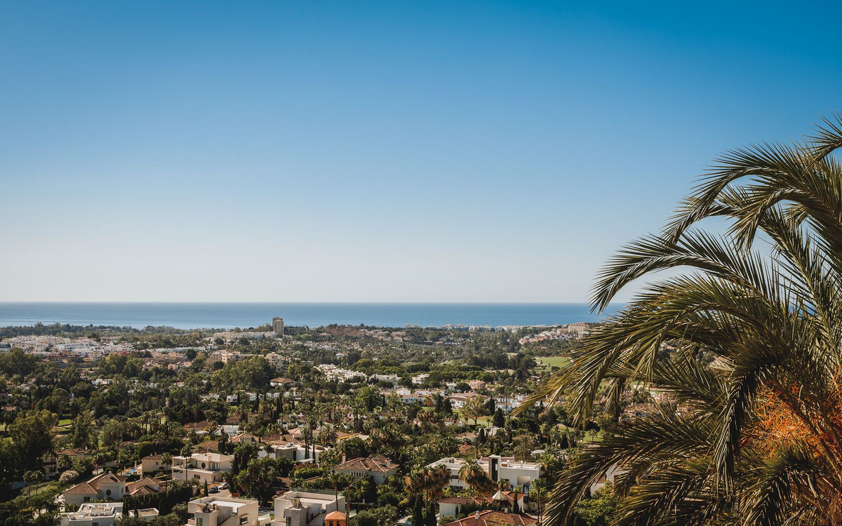 Spectaculaire penthouse en duplex entièrement rénové avec vue panoramique imprenable sur la mer, les montagnes et la vallée du golf à Los Belvederes, une résidence fermée réputée de La Cerquilla, Nueva Andalucia, avec sécurité 24h/24, jardins communs arborés, piscine, 2 courts de tennis (actuellement en discussion pour convertir l'un d'eux en 2 courts de paddle) et une salle de sport avec sauna. La propriété occupe tout le dernier étage de l'immeuble et comprend une impressionnante entrée avec vestiaire et petite cave à vin, menant au salon/salle à manger avec vue panoramique sur la mer et accès à une terrasse couverte menant à une terrasse découverte avec bassin profond/jacuzzi ; une cuisine ouverte avec appareils électroménagers Neff haut de gamme ; et une chambre d'amis avec salle de bain attenante et dressing. À l'étage : une chambre principale double avec salle de bain attenante, cheminée, dressing et accès à une terrasse découverte avec stores électriques, bénéficiant des meilleures vues ; une chambre d'amis avec salle de bain attenante ; et une buanderie. Les autres caractéristiques comprennent : la technologie aérothermique Daikin ; Chauffage au sol (eau chaude) dans toute la maison ; système audio Sono dans toute la maison ; climatisation réversible avec régulateurs de zone. La propriété comprend une place de parking et