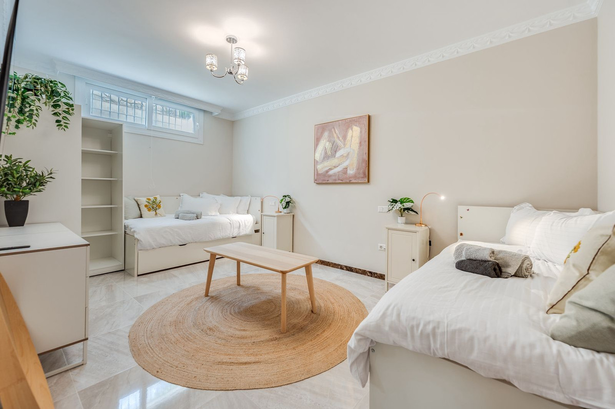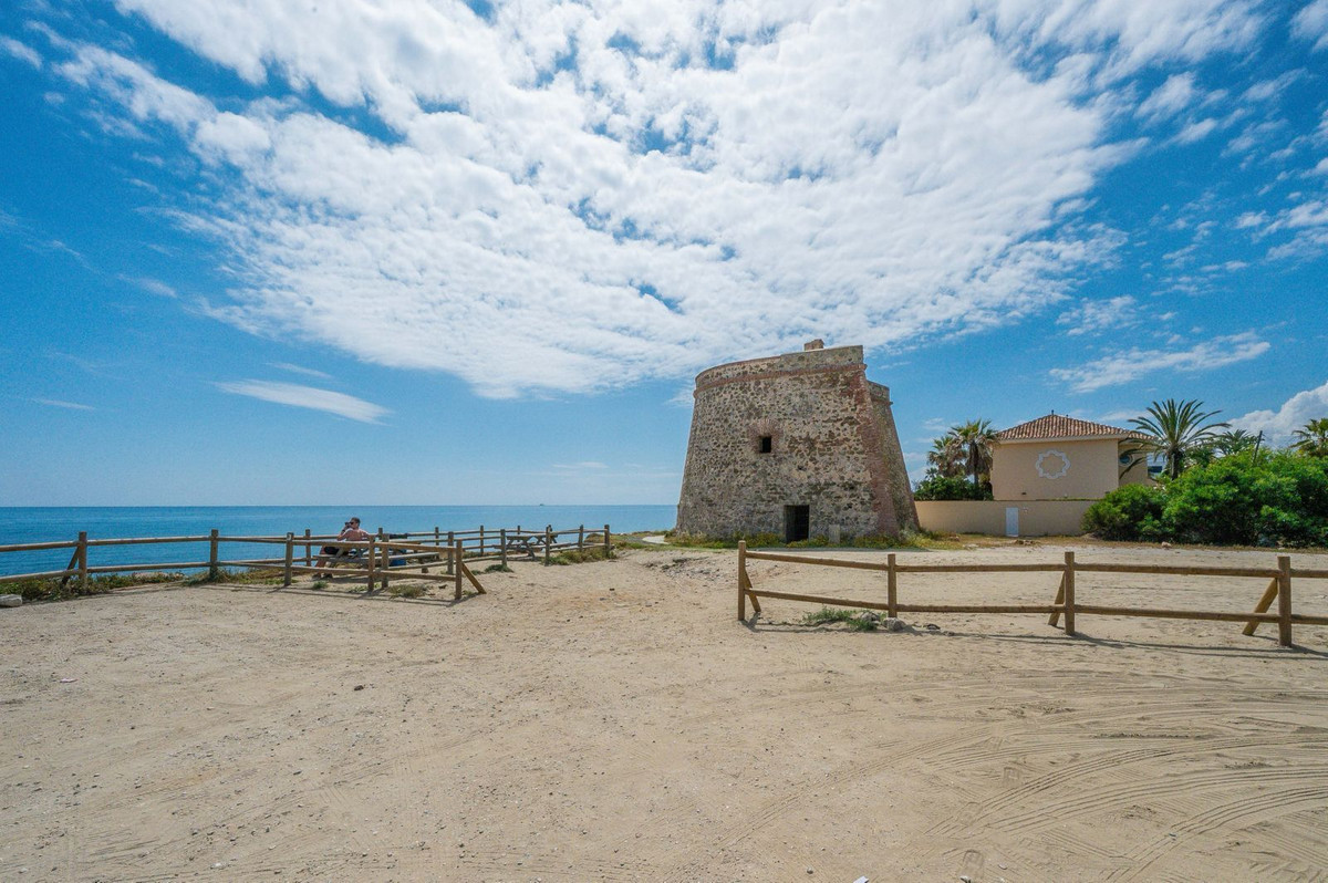 Niveau supérieur : Trois chambres doubles bien présentées, dont la principale avec salle de bains privative et accès à une terrasse de 36 m² offrant une vue imprenable sur la mer et des panoramas sur l'historique Torreón de Lance de las Cañas du XVIIIe siècle.