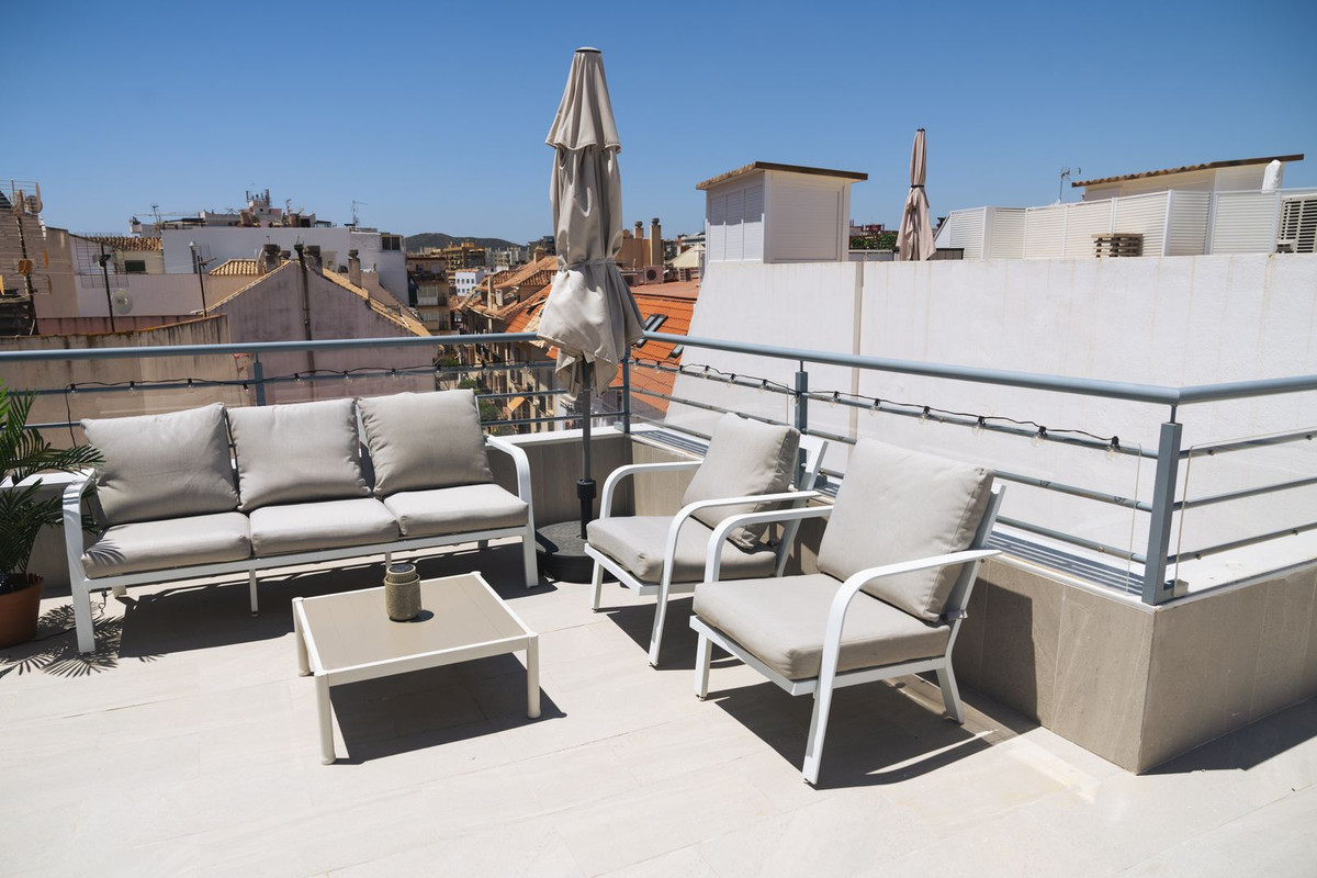 Le penthouse dispose d'un balcon exposé sud donnant sur le salon, idéal pour prendre votre café du matin. À l'étage, une grande terrasse sur le toit d'environ 25 m² est accessible par un escalier privé à l'intérieur de l'appartement. Ce toit-terrasse est à votre usage exclusif, car il est accessible uniquement par un escalier privé à l'intérieur de l'appartement. Vous pourrez y organiser un dîner entre amis ou simplement vous détendre et profiter de la vue.