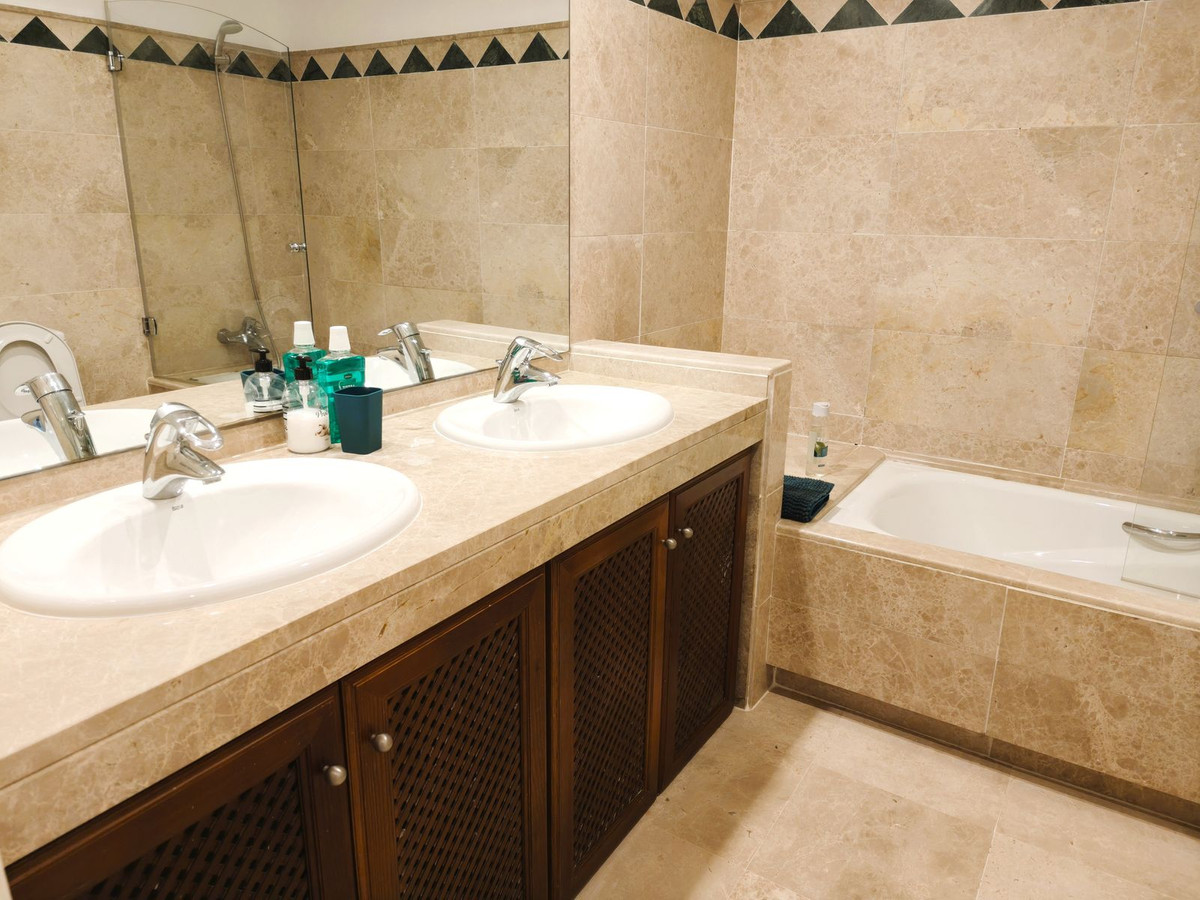 Cet excellent appartement de trois chambres au premier étage, situé dans le prestigieux San Roque Club, allie confort, élégance et emplacement privilégié. Il comprend un spacieux séjour-salle à manger, une grande cuisine entièrement équipée, deux salles de bains, des toilettes invités et une spectaculaire terrasse de 77 m² avec stores motorisés neufs, offrant une vue imprenable sur le golf, la mer et la campagne environnante. La chambre principale dispose d'une salle de bains privative et d'un accès direct à la terrasse principale, tandis que les deux autres chambres s'ouvrent sur une seconde terrasse.