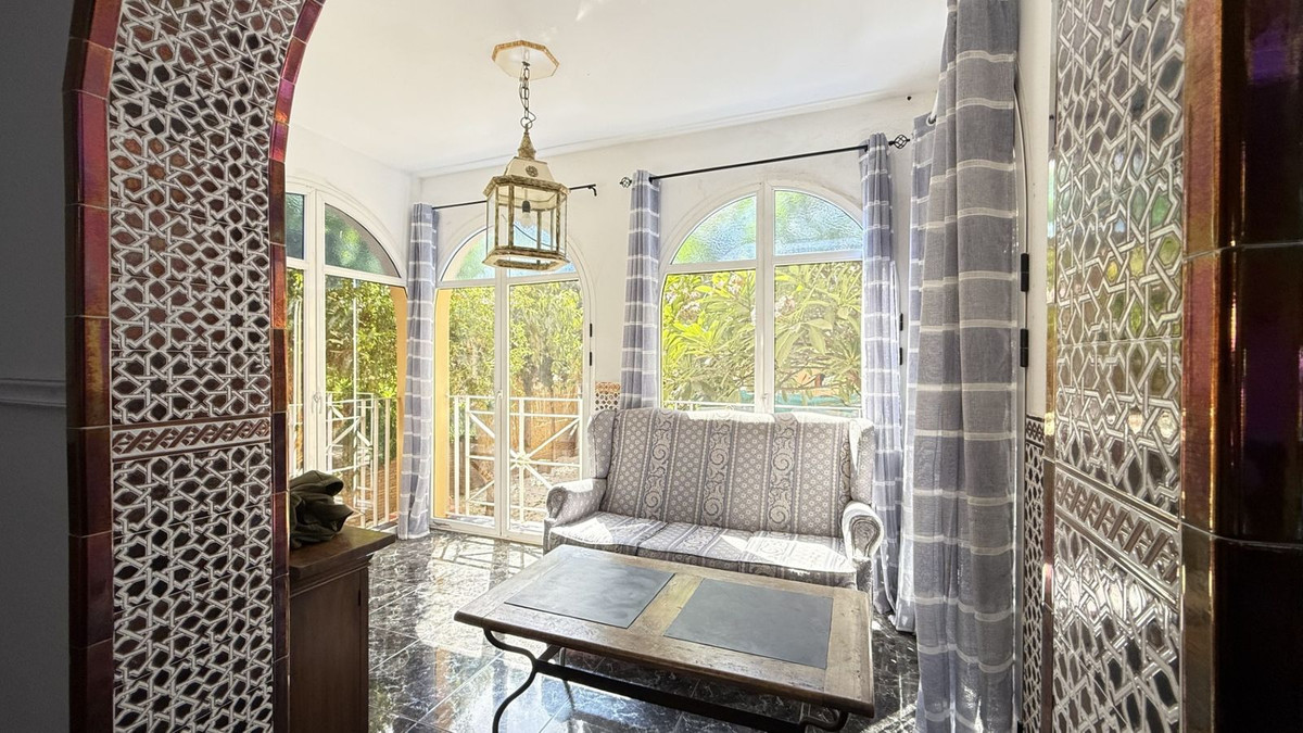 Villa marocaine unique alliant charme, espace et caractère. Une opportunité rare de posséder une villa marocaine unique en son genre, magnifiquement rénovée (à l'exception de la cuisine) avec une attention méticuleuse aux détails, tout en préservant son charme authentique. Située à quelques pas de toutes les commodités, cette spacieuse propriété allie élégance intemporelle et confort moderne. La villa dispose de 5 chambres doubles spacieuses et de 4 salles de bain et 1 salle d'eau, dont deux chambres avec des pièces attenantes idéales pour un bureau à domicile ou un espace d'étude. Les deux chambres supérieures, exceptionnellement spacieuses, sont idéales pour des séjours privés. La villa dispose d'une piscine privée et d'arbres fruitiers matures. À l'intérieur, la villa climatisée comprend un sous-sol avec home cinéma, billard et table de ping-pong. Si la cuisine n'attend que votre touche personnelle, le reste de la maison a été récemment rénové avec des prestations haut de gamme. La propriété comprend également un garage privé et détient une licence de location touristique, ce qui ajoute un potentiel d'investissement à son style de vie unique. Une maison vraiment unique, pleine de personnalité, d'espace et de style, prête à être utilisée comme résidence privée, résidence de vacances de luxe ou location saisonnière.