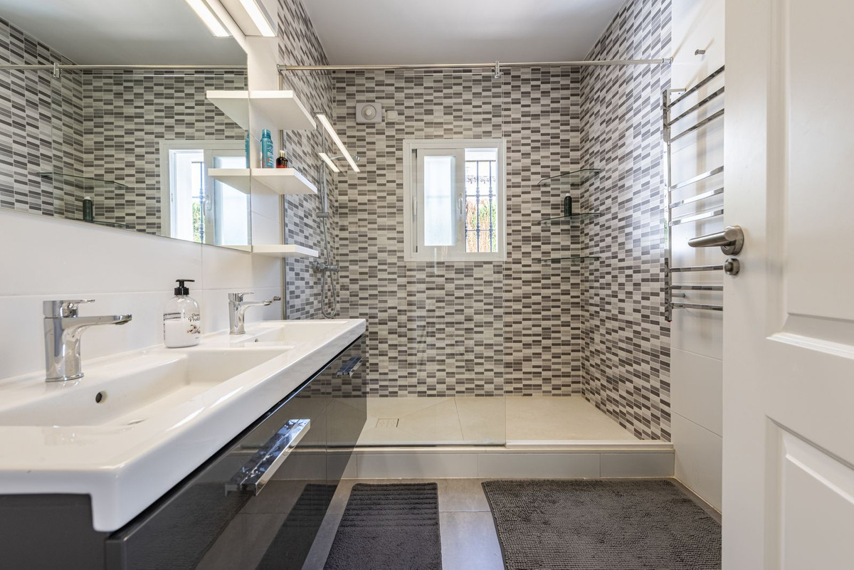 La villa est bien équipée avec de nombreux espaces de rangement, des armoires encastrées, des volets électriques, la climatisation dans chaque pièce et des ventilateurs intégrés dans les salles de bains.