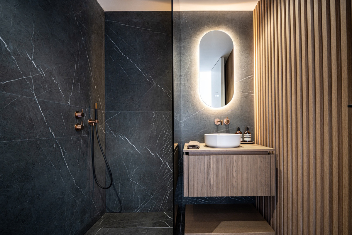 Cette maison de ville dispose d'un salon et d'une salle à manger ouverts, chaleureux et modernes, aux touches de bois. Une grande terrasse s'ouvre sur le salon, et toutes les chambres bénéficient de terrasses privatives. La cuisine entièrement équipée allie style et fonctionnalité. L'intérieur, lumineux et contemporain, allie confort et design intemporel.