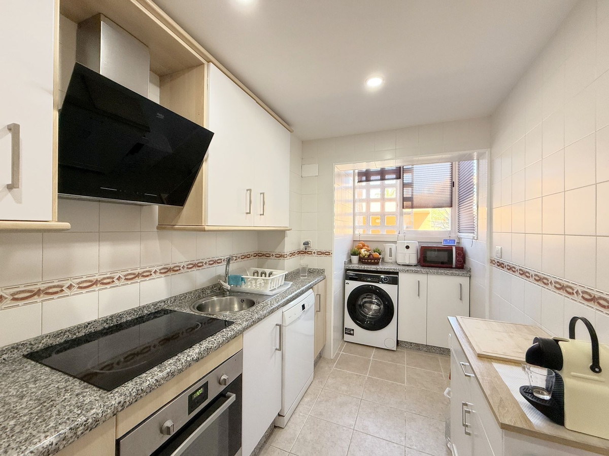 Situé à Casares Costa, un quartier en plein essor entouré de nature, de prestigieux golfs tels que Finca Cortesin et Doña Julia, et de résidences exclusives, ce confortable appartement en rez-de-chaussée se distingue par sa spacieuse terrasse avec vue partielle sur la mer et son cadre paisible et privé, idéal pour profiter du climat méditerranéen toute l'année. À seulement 4 minutes en voiture des ports de plaisance de La Duquesa et d'Estepona, et à proximité du futur hôtel Hilton, son emplacement offre un accès privilégié aux plages de sable, à une charmante promenade, aux restaurants, aux bars de plage et aux espaces de loisirs. En parfait état et prêt à emménager, ce bien fonctionnel de plain-pied comprend deux chambres spacieuses, deux salles de bains, un séjour lumineux avec accès direct à la grande terrasse privée et une cuisine rénovée avec buanderie récemment construite, offrant espace et confort supplémentaires. Orienté sud-ouest, l'appartement bénéficie d'une lumière naturelle tout au long de la journée et d'une atmosphère chaleureuse et relaxante. Située dans une résidence sécurisée avec accès piétonnier à la plage en environ 12 minutes, elle dispose de jardins tropicaux luxuriants, de six piscines (dont une ouverte toute l'année), d'un service de conciergerie 24h/24, de la climatisation réversible, d'un parking souterrain et d'un cellier. De plus, elle dispose d'une licence touristique valide, ce qui en fait un investissement idéal pour un usage personnel ou pour des locations saisonnières ou à long terme. Une opportunité unique à ne pas manquer !