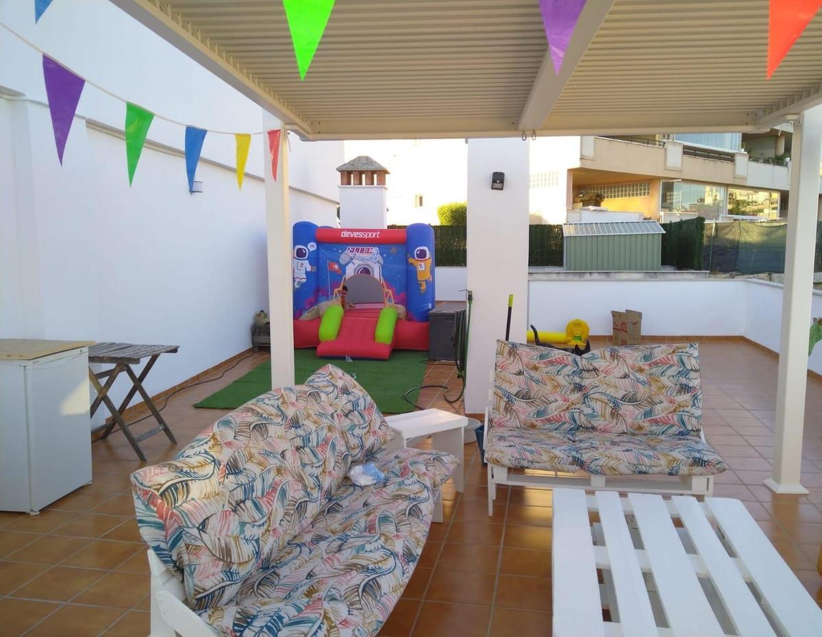 The apartment consists of three spacious bedrooms, perfect for accommodating a family or guests, as well as two functional bathrooms, one of which is en-suite to the master bedroom. The main living area allows for a combined living and dining space with direct access to a 30 m² terrace, providing a pleasant outdoor extension where you can enjoy the mild Costa del Sol climate.