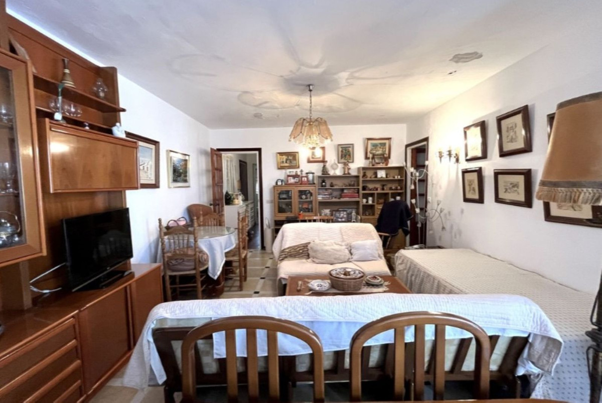 Apartment in the Puerto Deportivo area of Estepona, with stunning panoramic views, in a well-known urbanization with gardens, swimming pool, parking, surrounded by all kinds of services such as restaurants, bars, shops and just a 5-minute walk from Cristo beach. The apartment consists of 3 good-sized bedrooms, two bathrooms, living room, kitchen, laundry room, and closed terrace with Lumon. Great investment opportunity, the property needs complete refurbishment. Don't miss the chance for a great investment, come and see it.