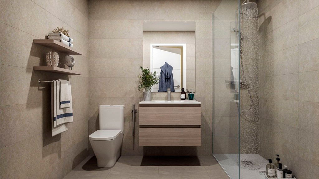 Les maisons sont réparties sur quatre blocs et se distinguent par de spacieuses terrasses. Elles sont équipées de marques haut de gamme et la cuisine entièrement équipée dispose de tous les appareils électroménagers nécessaires. De plus, les appartements sont équipés d'une climatisation à haute efficacité énergétique grâce à la technologie aérothermique.