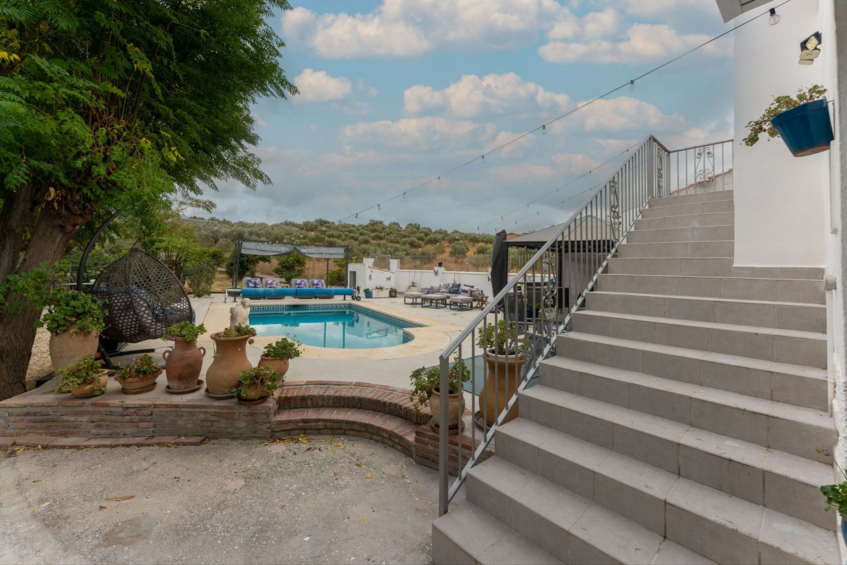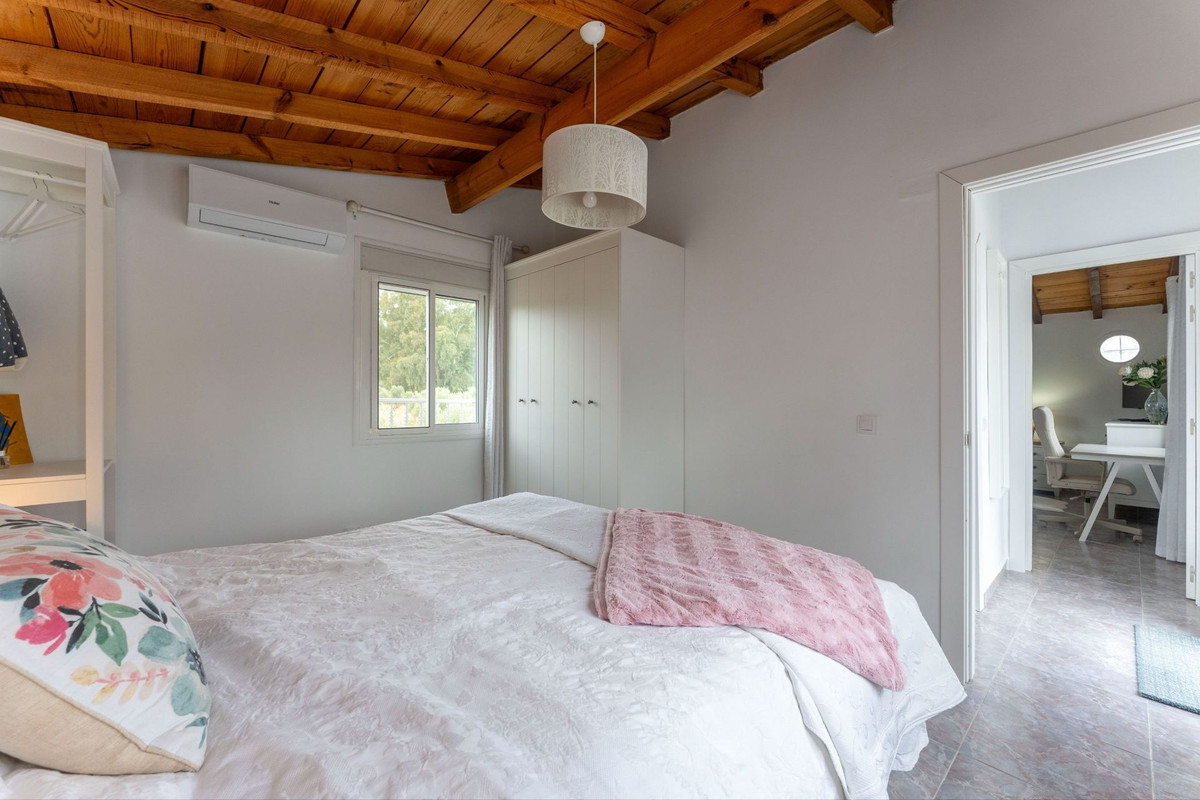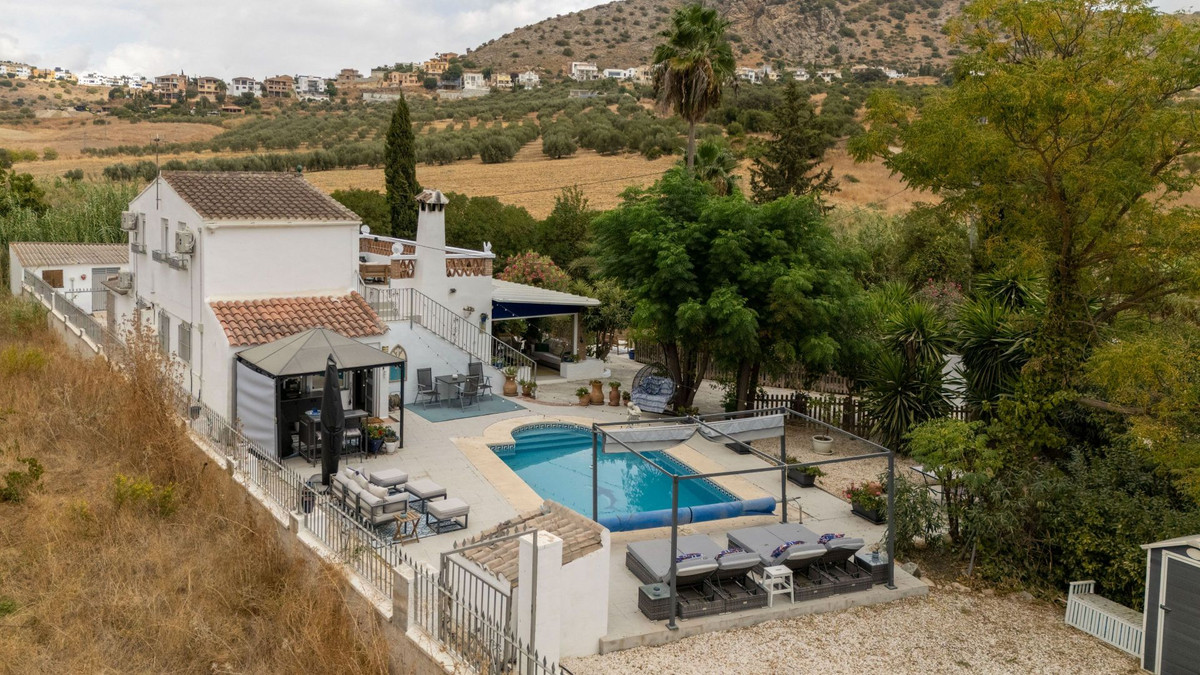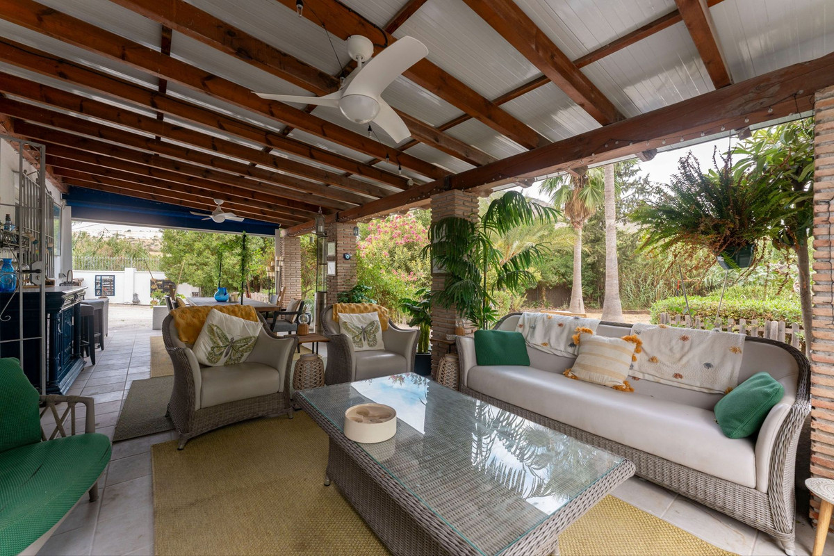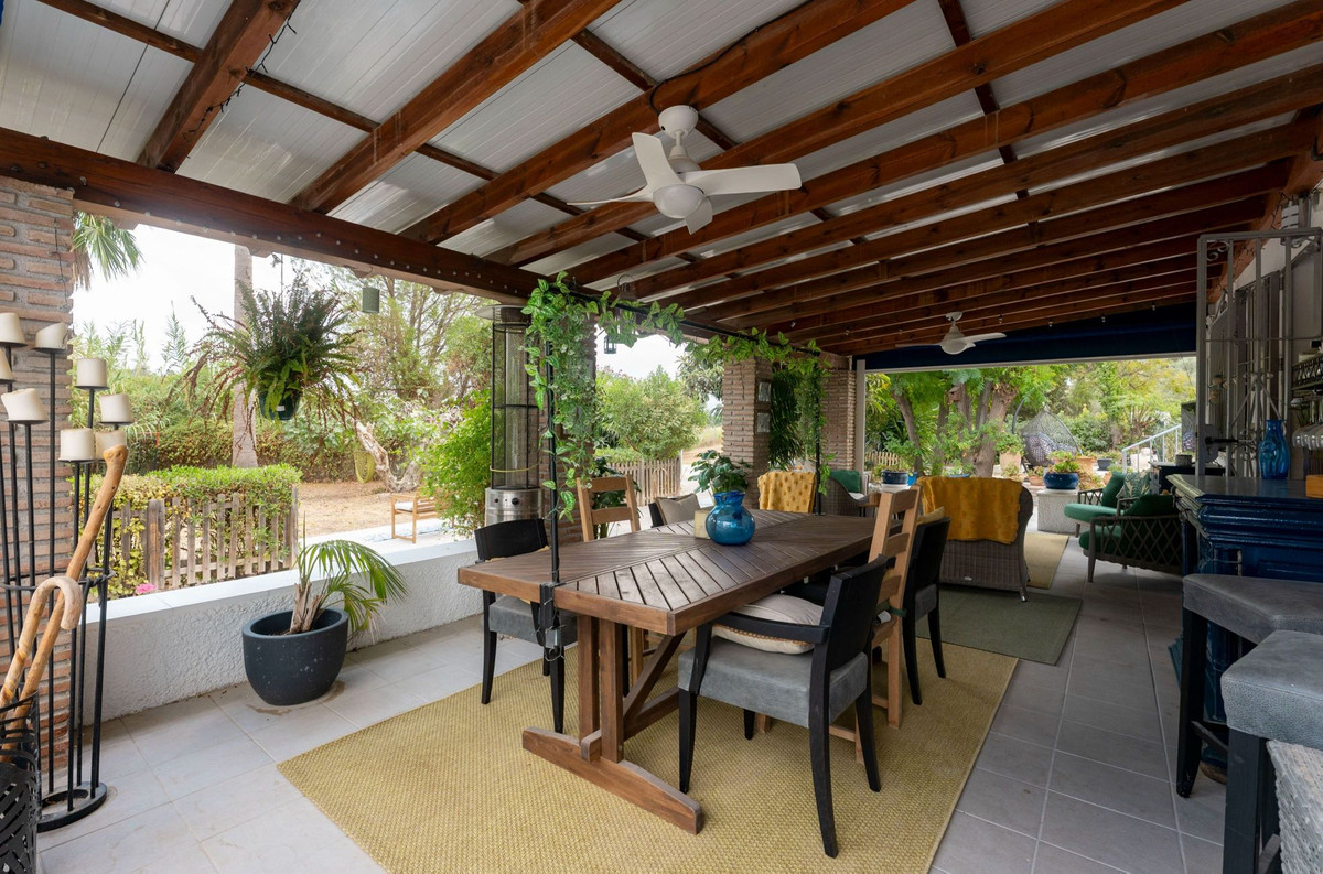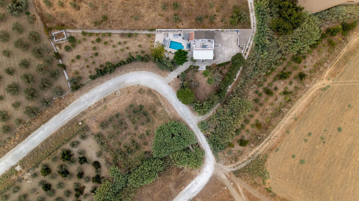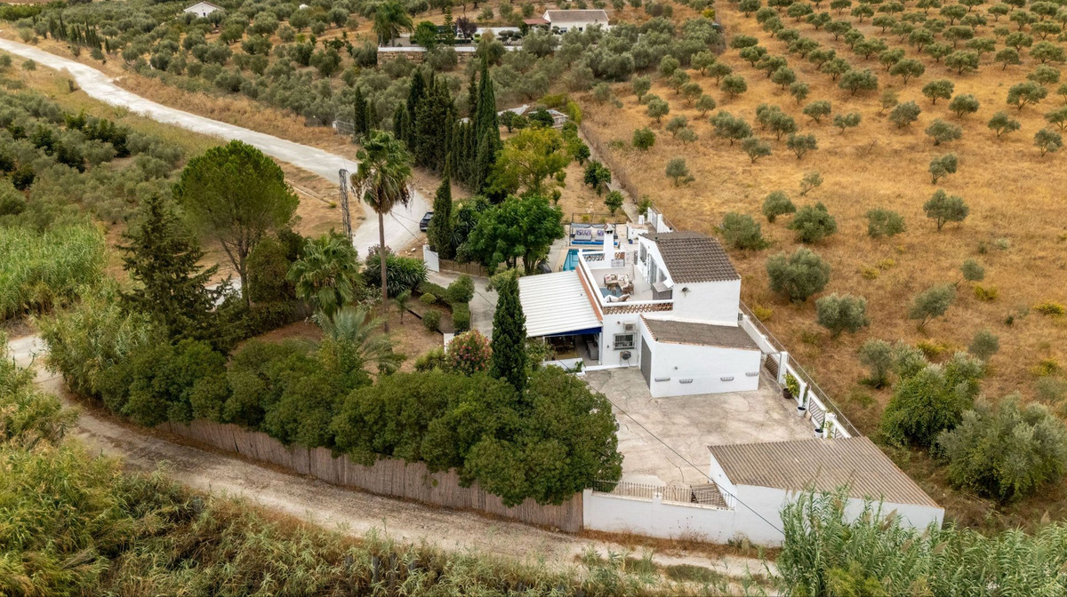 La propriété est située sur un terrain plat d'un peu plus de 4 400 m², dont une partie entoure la maison, tandis qu'une autre parcelle, plus petite, se trouve de l'autre côté du chemin. Cet espace indépendant est planté d'environ 40 oliviers et 40 orangers, apportant une touche andalouse authentique. La parcelle principale est entièrement clôturée, garantissant intimité et sécurité.