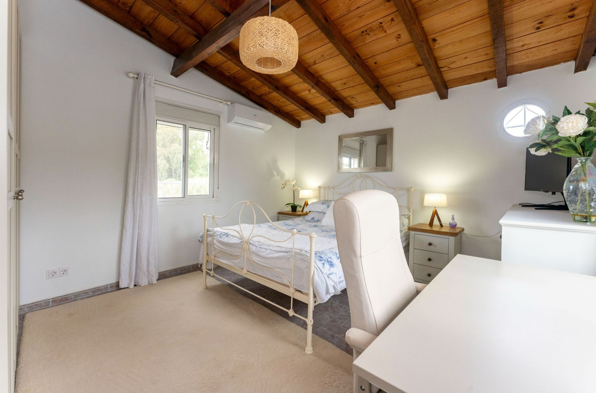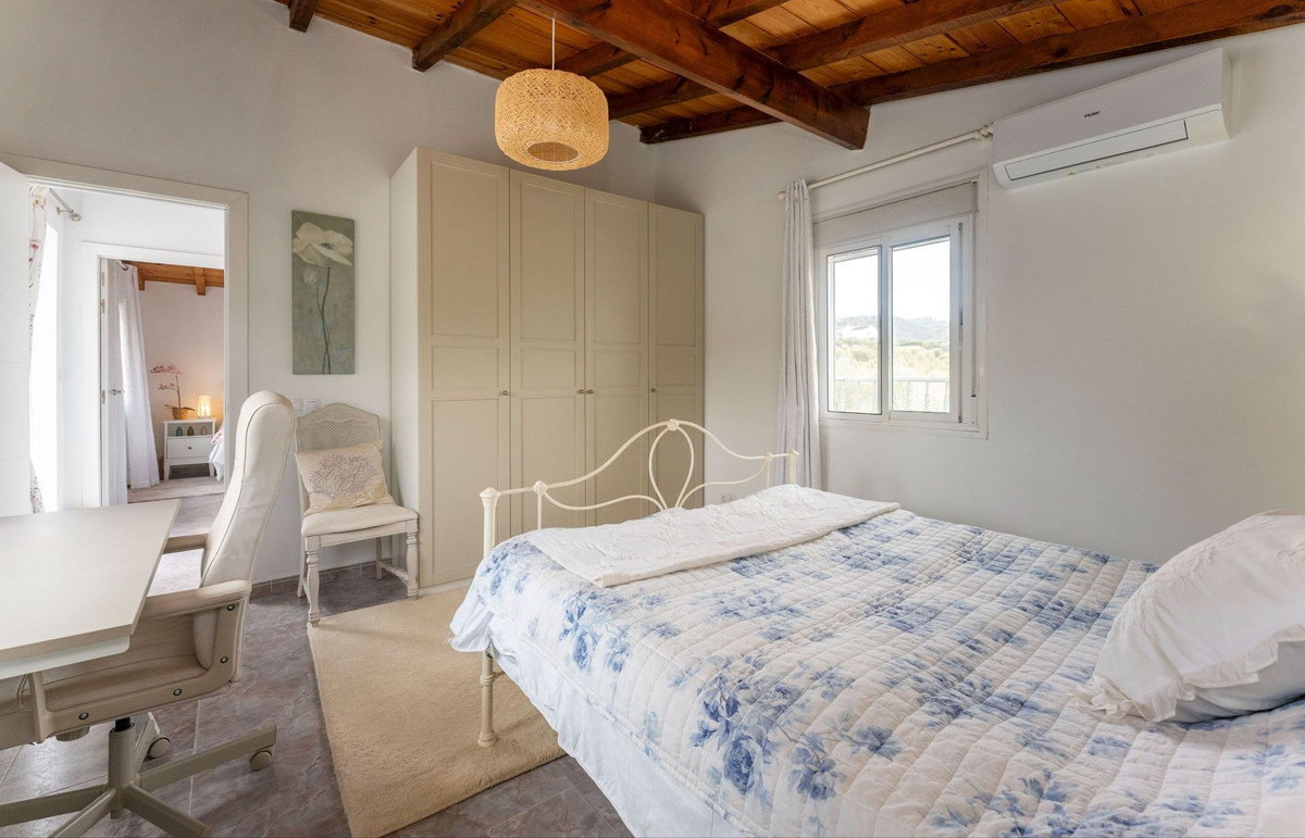 Le premier étage, accessible par un escalier extérieur, comprend deux autres chambres doubles et une seconde salle de bain, toutes deux agrémentées de magnifiques plafonds en bois. Cet agencement est idéal pour accueillir des enfants adultes, une famille nombreuse ou même des invités, offrant flexibilité et indépendance.