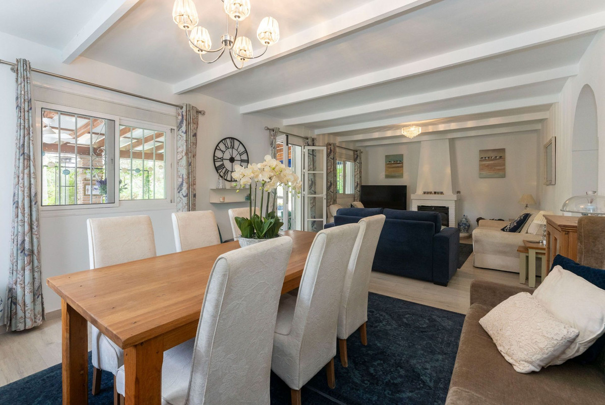 Le rez-de-chaussée dispose d'une spacieuse terrasse couverte, idéale toute l'année, qui mène à un salon-salle à manger lumineux et aéré. De là, une arche mène à une chambre double avec de nombreux placards, une salle de bain entièrement équipée avec baignoire et une cuisine spacieuse avec buanderie séparée. Cette buanderie offre des rangements supplémentaires et un accès direct à la piscine et à la cuisine d'été, créant ainsi une ambiance conviviale pour les réceptions en plein air.