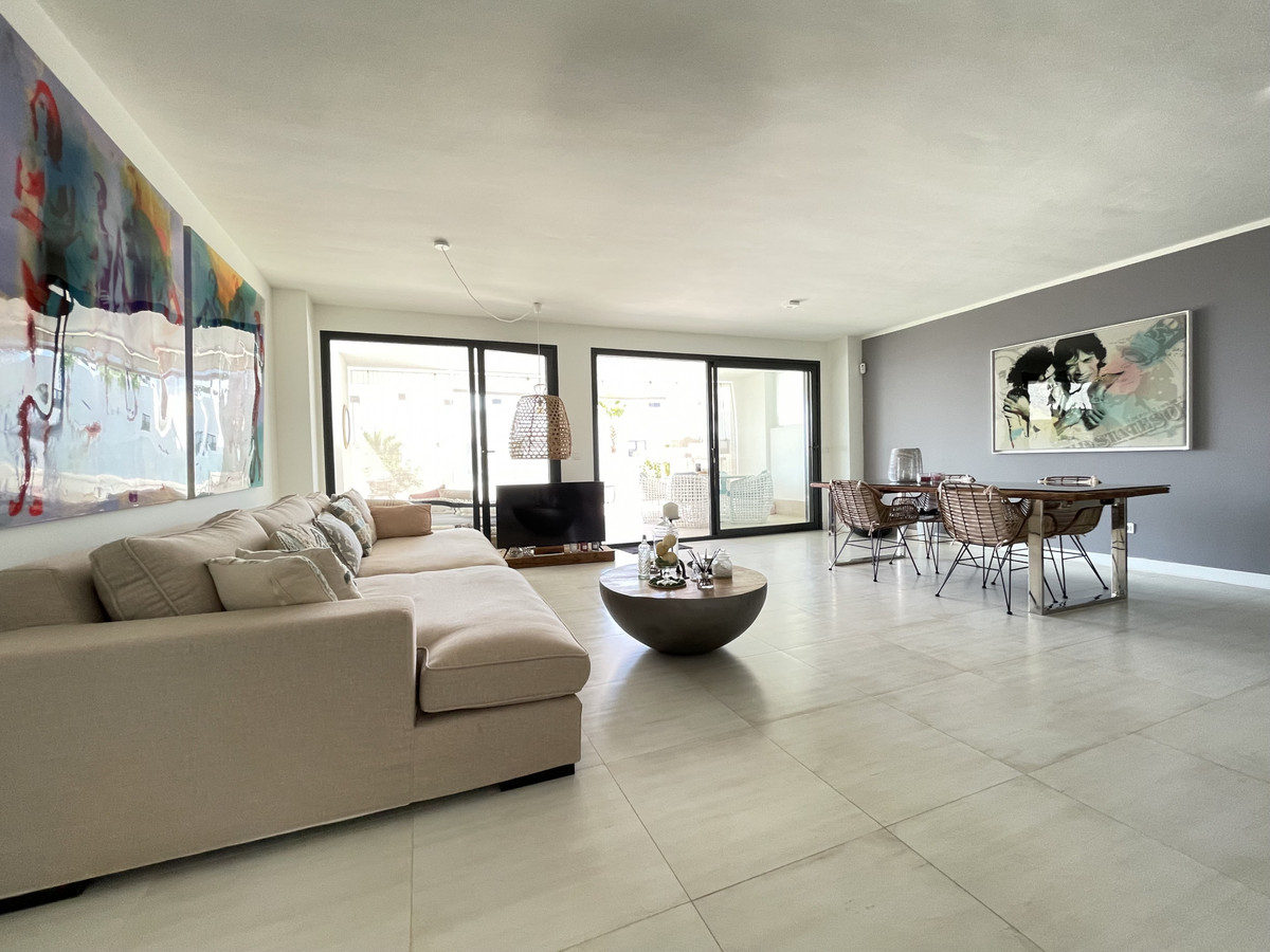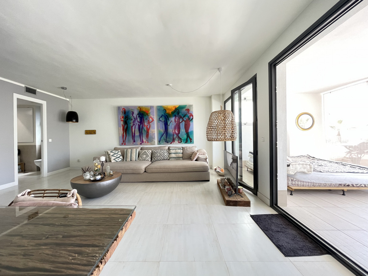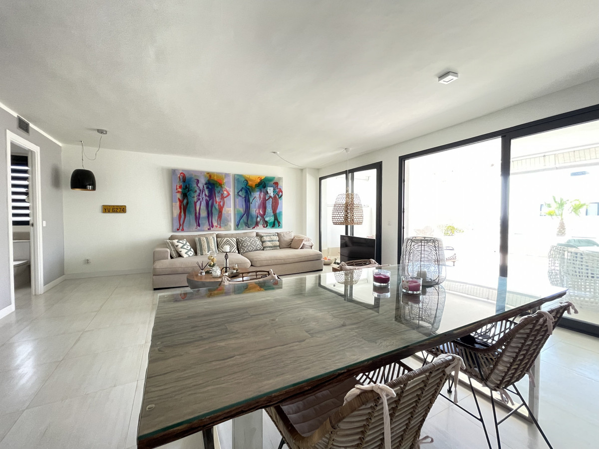 Nous vous présentons cet exceptionnel appartement en rez-de-chaussée situé dans le quartier recherché de Las Olas, à l'ouest d'Estepona. D'une surface construite de 182 m² et d'un espace intérieur de 90 m², ce bien se distingue par sa transformation, passant de trois chambres à un appartement moderne de deux chambres, offrant un séjour de 30 m², offrant ainsi plus d'espace et de confort.
