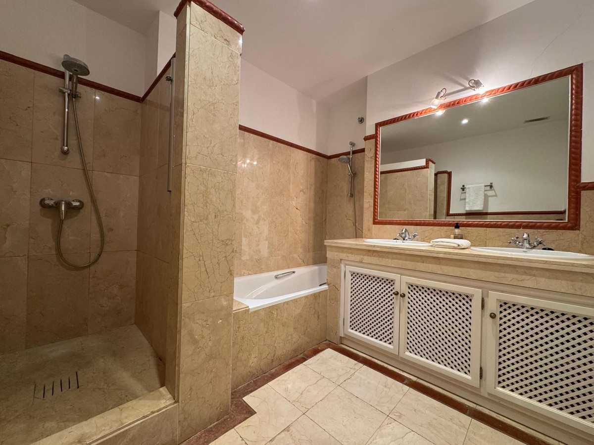 Beautiful 3-bedroom ground floor apartment facing the sea, located in one of the best residential areas in the area. A high-quality, fully furnished flat. The living/dining room has a fireplace, is very bright and opens onto a covered glassed-in terrace of over 60m² with spectacular sea views. The kitchen is separate and also enjoys the views, as does the master bedroom with its en-suite bathroom.