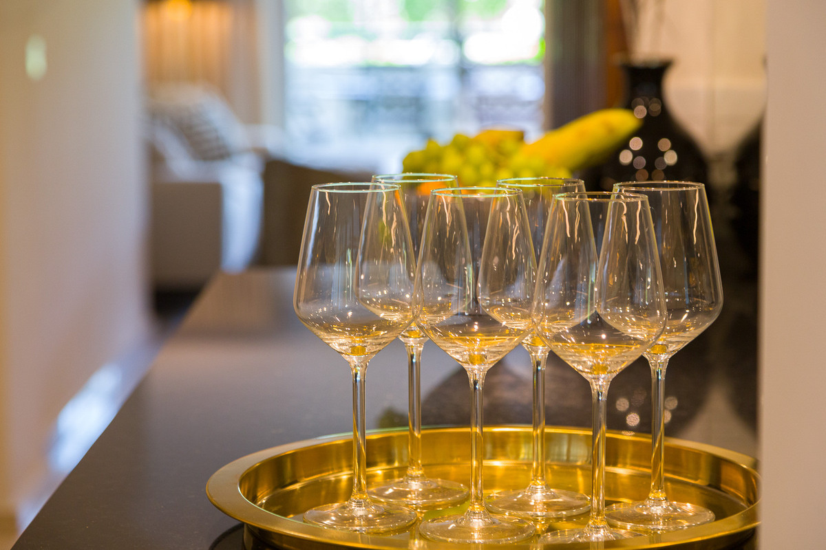 Open modern kitchen with all top-quality equipment (dishwasher, 2 fridges, oven, induction hob, modern steam extractor, microwave and etc.), bar zone, decorated LED lighting.