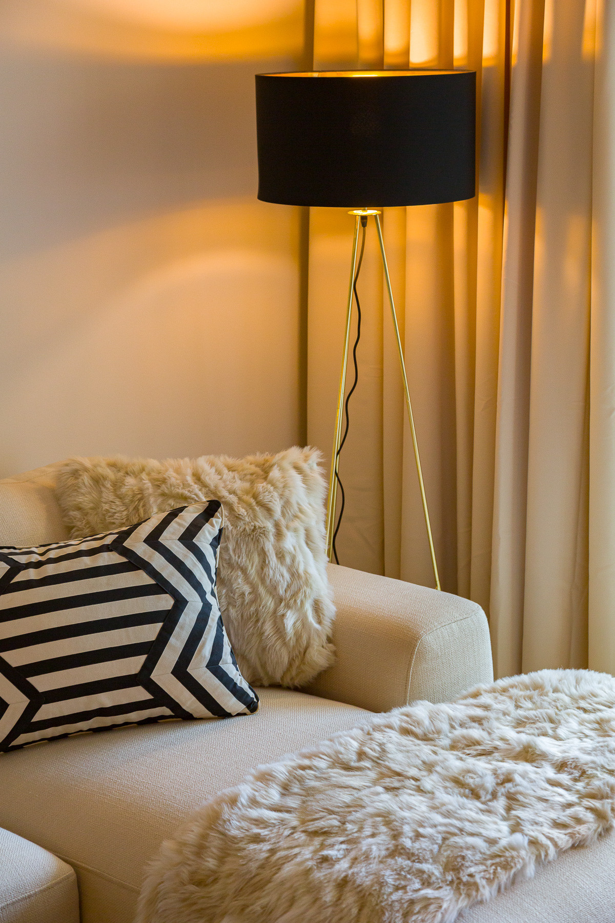 Living room spacious, comfortable sitting area (or to lie down), HD TV wall composed with fireplace decorated with hidden LED lighting.