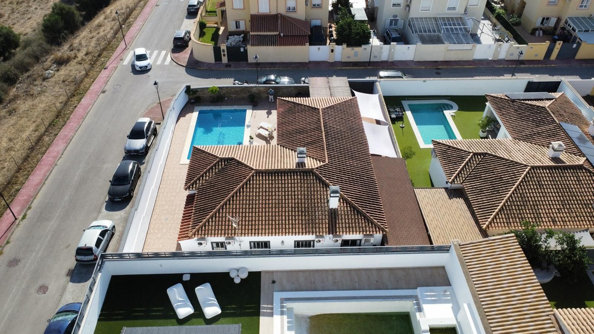 Cette charmante villa de plain-pied de 4 chambres et 3 salles de bains à Los Barrios offre confort, intimité et finitions modernes dans un cadre résidentiel paisible. Implantée sur un terrain d'angle de 495 m² (dont 229 m² habitables), elle bénéficie d'une vue dégagée sur la verdure et Gibraltar, ainsi que d'une excellente intimité.