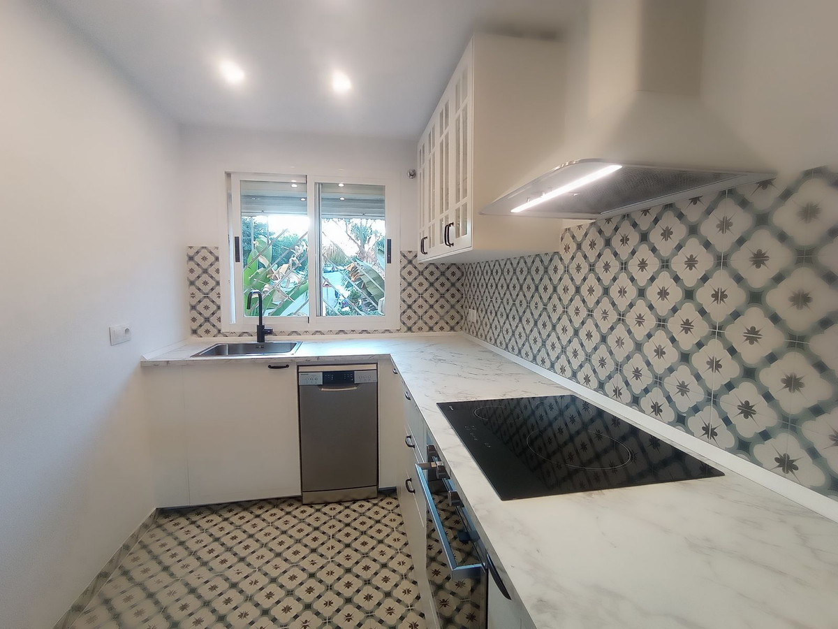 Walking distance to the beach and shopping center. Beach bars, restaurants, and supermarkets. Large terrace, approximately 30 square meters, with unobstructed views. Walking distance to the beach and shopping center. Cafe, restaurants, and beach bars. Also walking distance to your favorite gym, approximately 15 minutes. Corner apartment with a bathroom with a window and a kitchen with a window. Communal pool and garden. Gated community parking. Newly renovated open-plan kitchen. Appliances with invoices. Some furniture is included, also new, but not yet installed. Living room and master bedroom with fireplace. Built-in barbecue on the terrace.