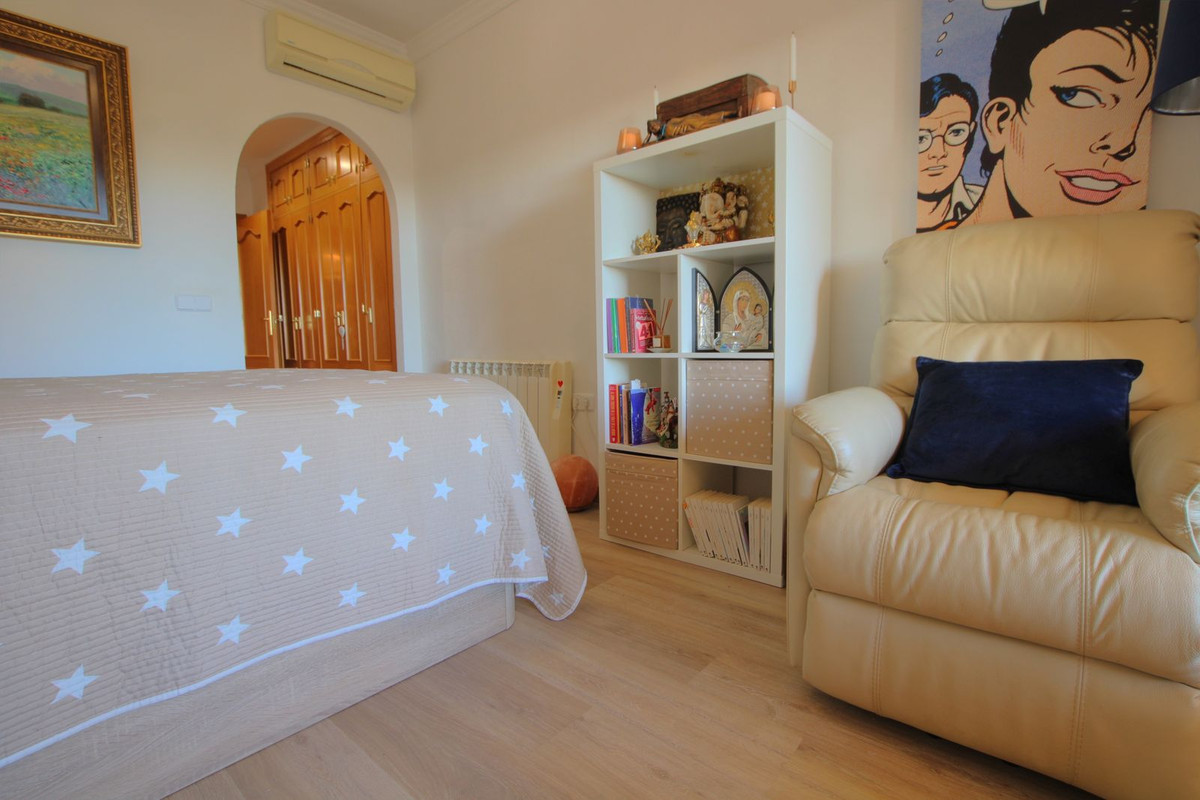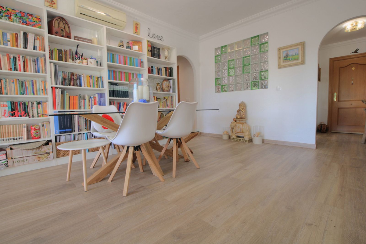 What a fantastic opportunity to snap up this gorgeous elevated ground floor apartment with superb open views from the large private terrace. Large lounge diner, separate fully fitted kitchen with generous utility room, 2 double bedrooms with built-in wardrobes, 1 en-suite family bathroom plus an additional guest shower room. There is an underwound garage space and a large storage room included. The community consists of only 16 properties, so is very quiet and feels very private and residential. The renowned La Cala Hills developments are some of the most sought after in Mijas and this property has everything you would expect in a luxury property