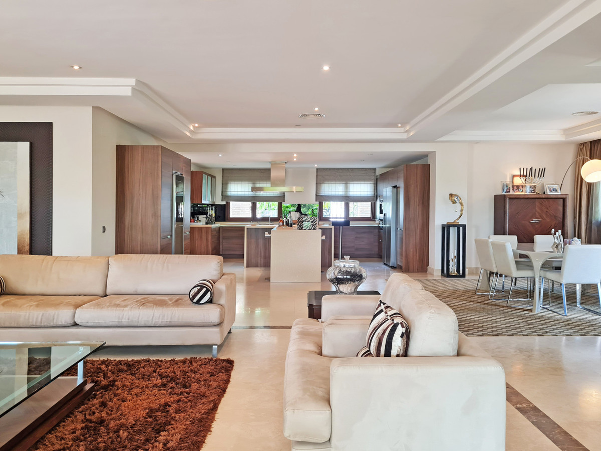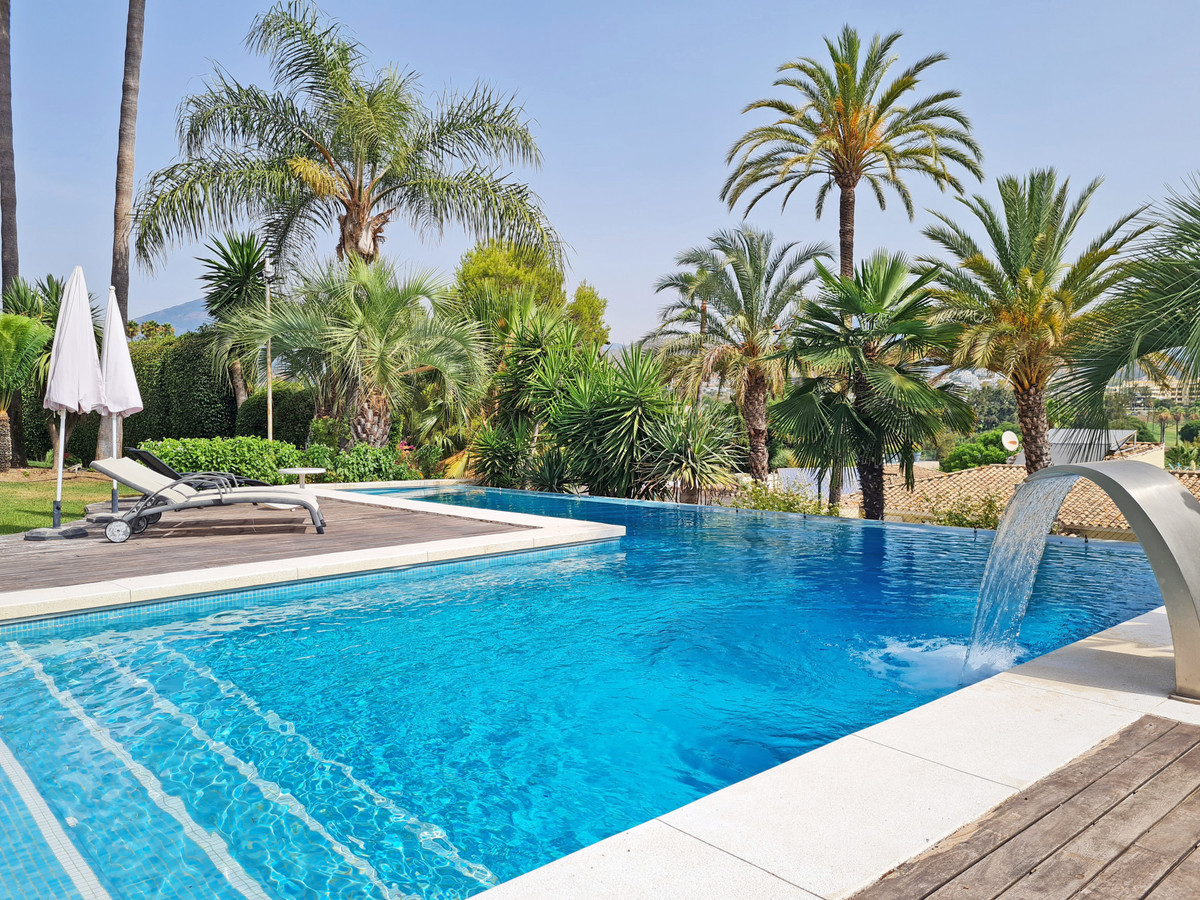 Nestled in a peaceful cul-de-sac, this exquisite villa offers exceptional privacy and breathtaking views over the golf valley towards La Concha Mountain. Built to the highest standards, it spans three levels with elegant interiors and seamless indoor-outdoor living.