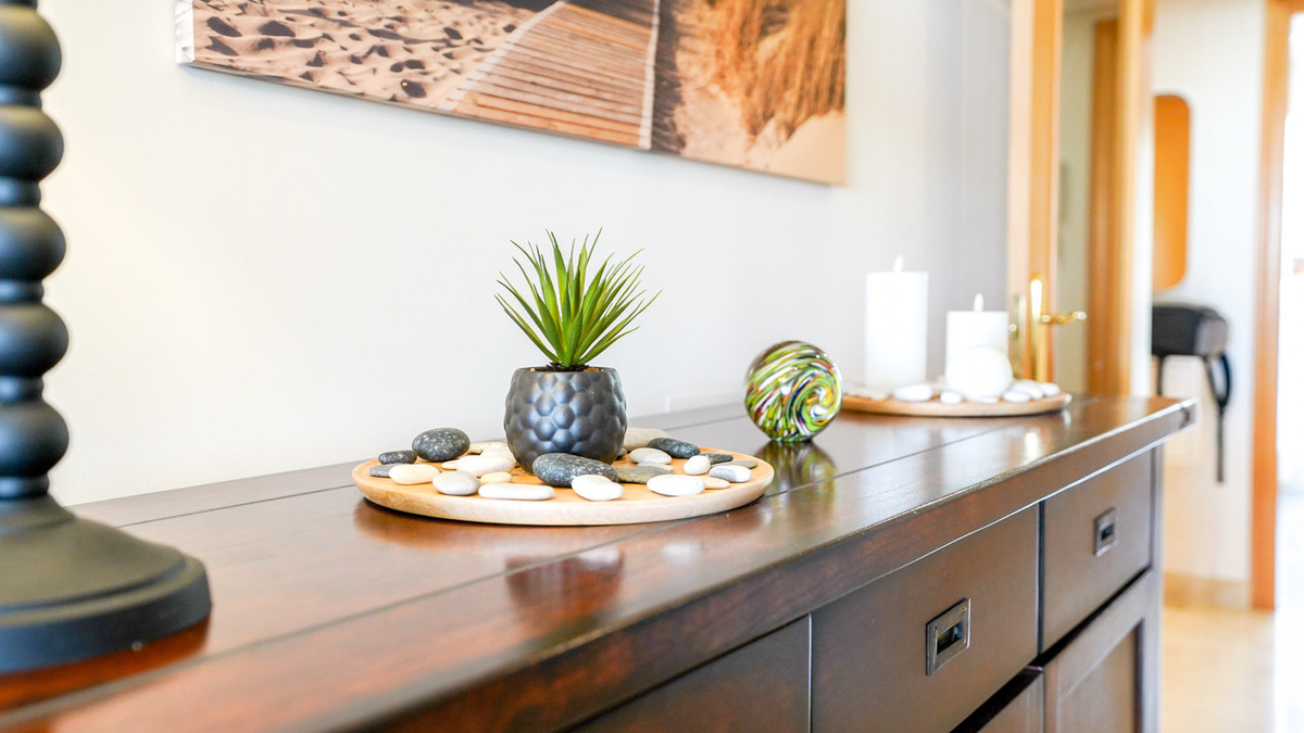 Entrez dans ce magnifique appartement, où confort et style se marient harmonieusement. Doté de deux vastes terrasses de 47 m², exposées est et ouest, ce logement offre une vue imprenable sur les montagnes et les luxuriants jardins communautaires, parfaits pour profiter du soleil matinal ou se détendre en soirée.