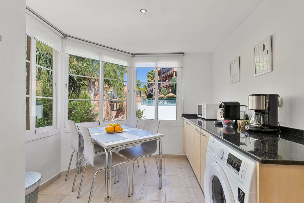 Le quartier est très bien entretenu, avec des jardins arborés et deux belles piscines. C'est un quartier très calme, à seulement 5 minutes en voiture de la plage et des commerces, et Los Pacos est accessible à pied en 10 à 15 minutes.