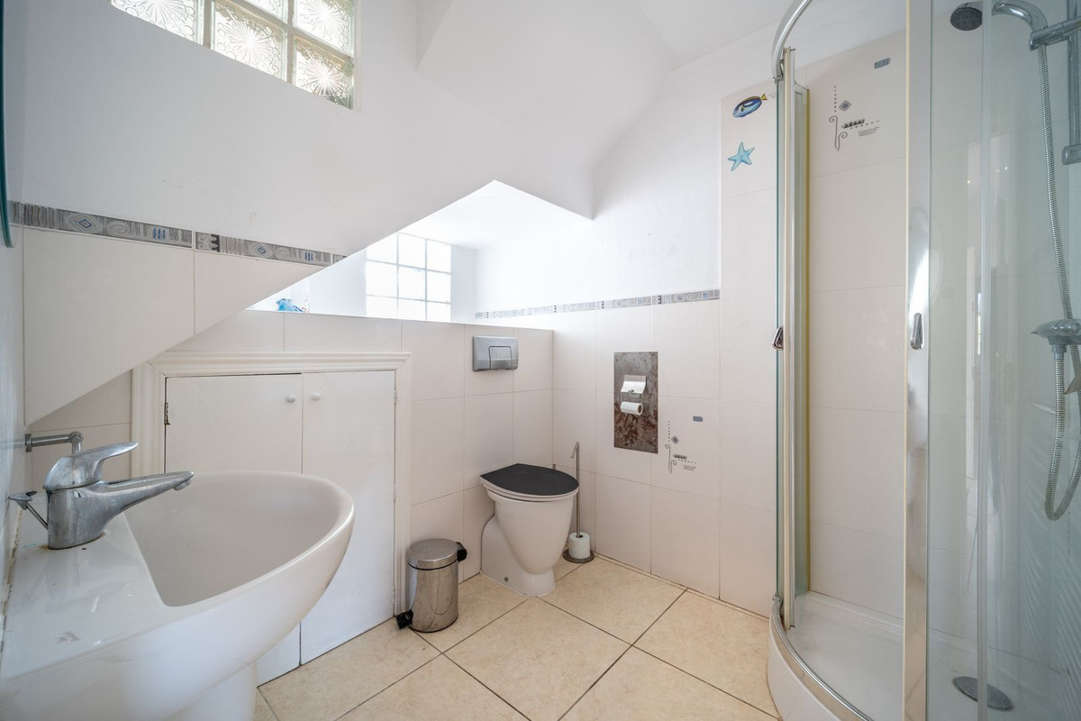 Au niveau de l'entrée, vous trouverez un vaste séjour/salle à manger ouvert avec cheminée, une cuisine de bonne taille, un bureau, une chambre et des toilettes pour invités.
