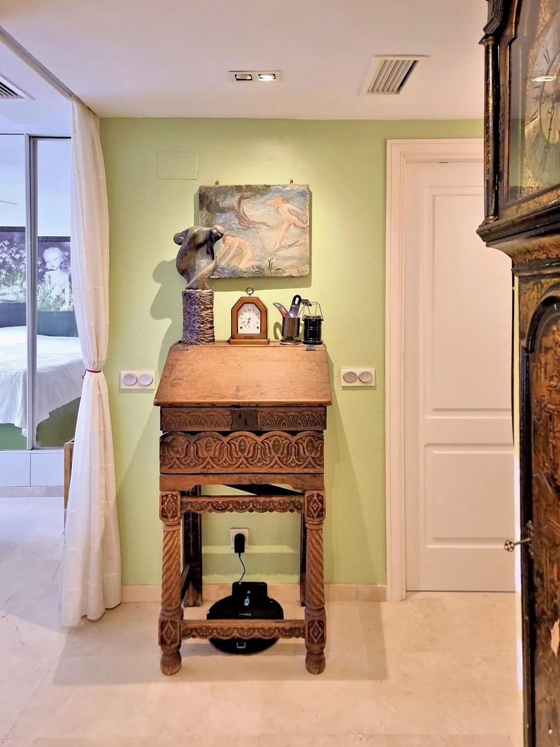 Spacieux et lumineux appartement d'angle exposé plein sud à Calahonda, alliant espace, confort et vues spectaculaires sur la mer et la montagne. Initialement composé de trois chambres, il a été transformé en deux, intégrant une chambre au séjour pour créer un espace plus vaste et modulable. Il comprend deux salles de bains, un dressing, une buanderie et une cuisine partiellement équipée. La propriété dispose d'une terrasse couverte, idéale pour profiter du beau temps et de la vue sur la mer, ainsi que d'un garage et d'un cellier en sous-sol. Son emplacement en angle garantit une plus grande intimité et une luminosité optimale. Parmi ses atouts : climatisation réversible, sols en marbre, double vitrage, placards intégrés et accès pour personnes à mobilité réduite. La résidence offre deux piscines communes, des jardins bien entretenus, un interphone, un accès sécurisé et un service de maintenance irréprochable. Situé dans une rue calme à sens unique, il se trouve à quelques pas des restaurants et à 5 minutes en voiture des bus, supermarchés, golfs, courts de tennis et de la plage. Une opportunité unique de vivre dans l'un des quartiers les plus prisés de la Costa del Sol, idéal comme résidence principale ou investissement.