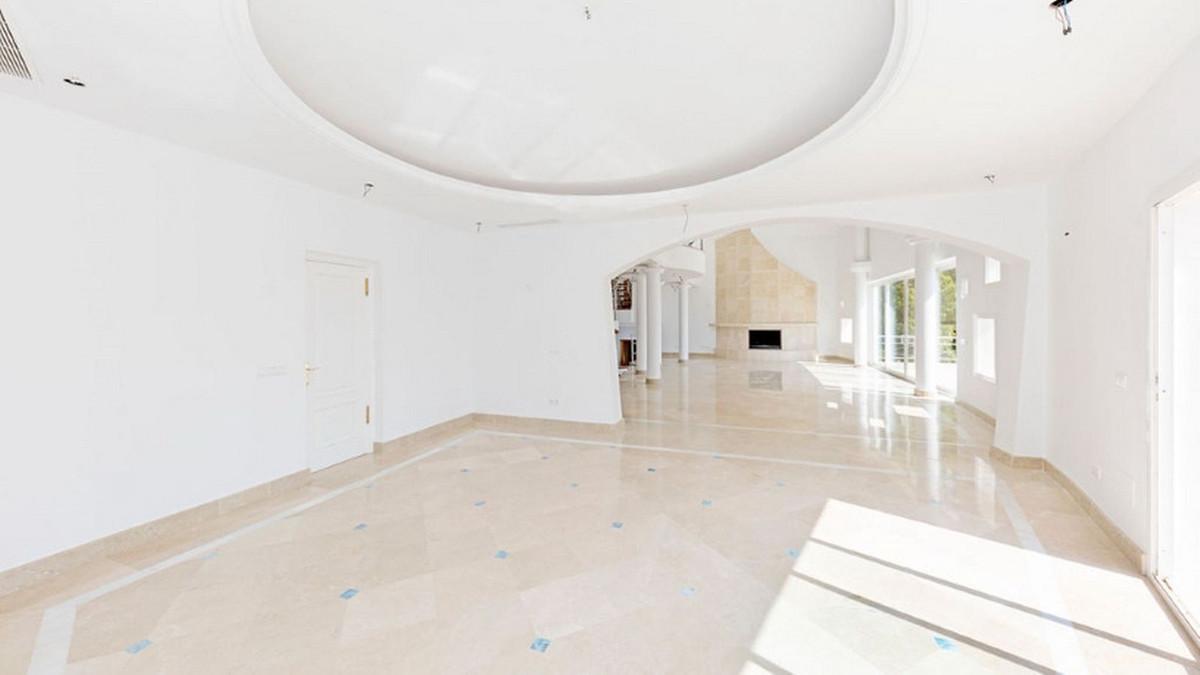 Maison individuelle située dans l'urbanisation El Almendro, à Benahavís. D'une superficie de 1 383 m² répartie sur quatre niveaux, elle comprend au rez-de-chaussée un vaste séjour, une salle à manger, une cuisine, un couloir d'accès au hall d'entrée, deux chambres avec salles de bains privatives et deux terrasses. L'étage supérieur, accessible depuis la rue par un porche d'entrée, se compose d'un hall d'entrée, d'un couloir, d'une chambre avec dressing, d'une salle de bains et d'une terrasse. Le demi-sous-sol abrite un garage spacieux pouvant accueillir plusieurs véhicules, une salle de jeux et deux chambres avec salles de bains privatives. Le sous-sol comprend un espace bar, un dressing, une salle de jeux et une salle de bains. La propriété s'étend sur un terrain de 3 868 m² comprenant un porche d'entrée, un parking et un grand jardin privatif avec piscine et jacuzzi, offrant une vue sur la mer. Elle est équipée de placards intégrés, d'une cuisine aménagée, d'une cheminée et d'une pré-installation pour la climatisation. Située dans un quartier résidentiel calme, à proximité de plusieurs terrains de golf.