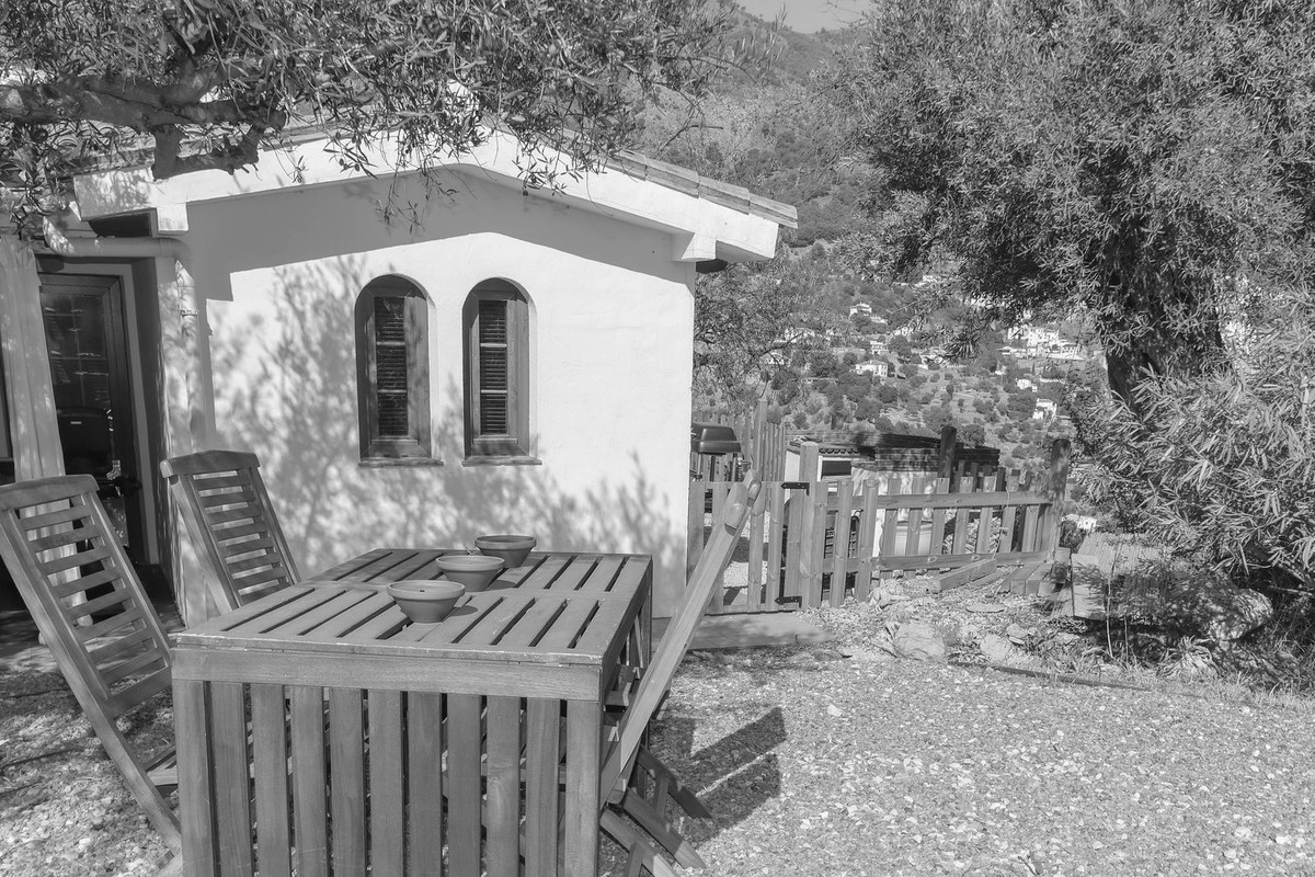 La cuisine traditionnelle de style andalou, attenante au salon, comprend un garde-manger très pratique. De là, une terrasse ombragée offre un havre de paix idéal pour se détendre et profiter du cadre naturel.