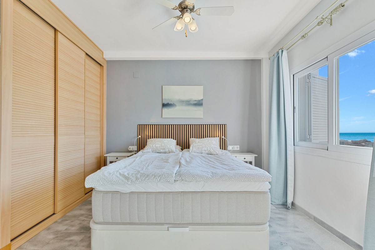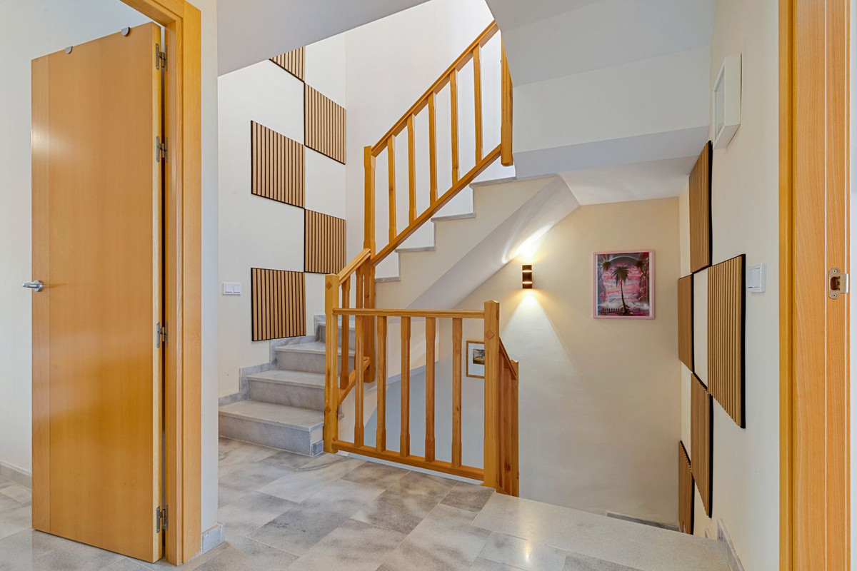À l'étage, on trouve trois chambres avec placards intégrés et deux salles de bains avec douche, dont une attenante. Au niveau supérieur se trouve une quatrième chambre avec toilettes et lavabo. Cet espace était auparavant une terrasse ouverte aménagée par l'ancien propriétaire. Une partie de la terrasse est encore accessible et offre un espace pour un barbecue et une table à manger. De là, on bénéficie d'une vue sur la mer et les environs.