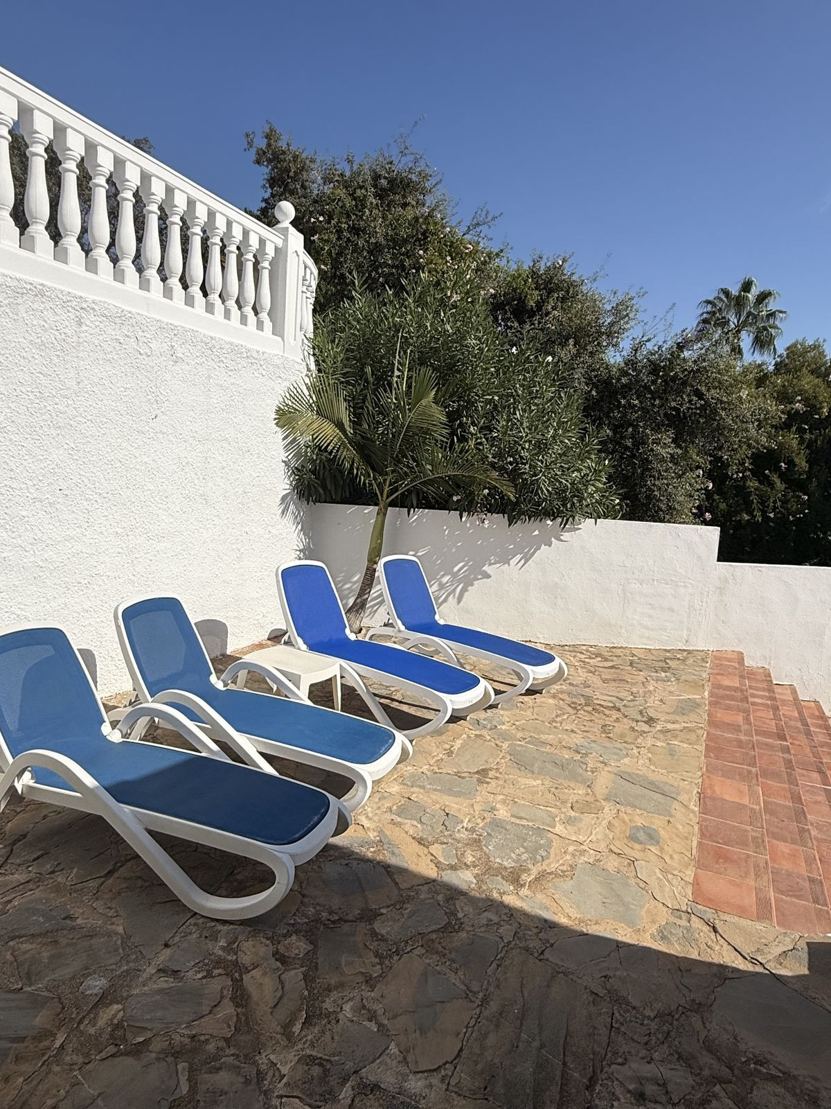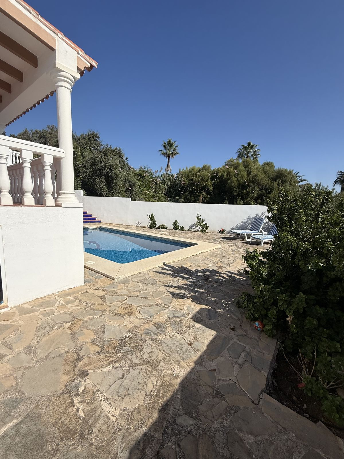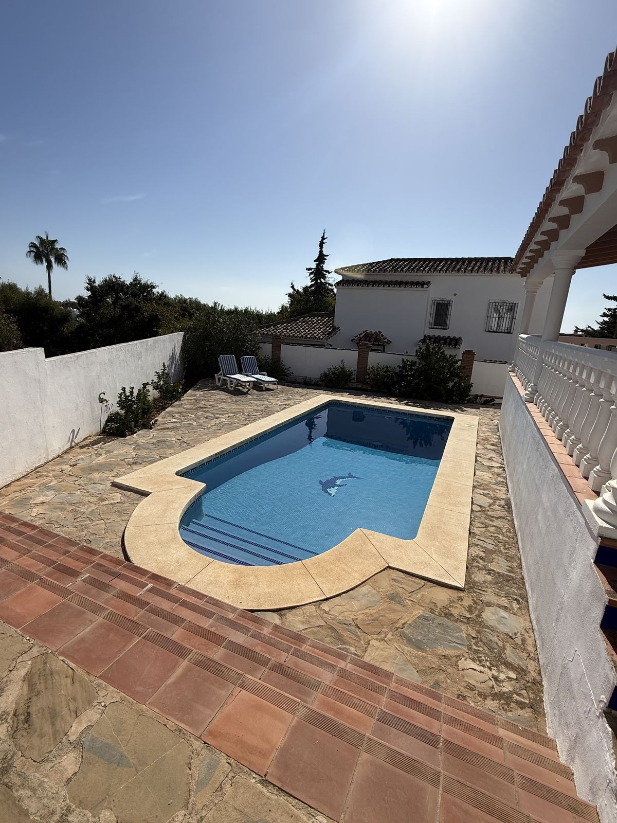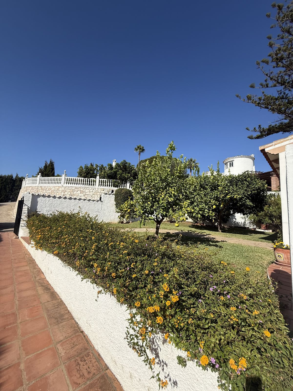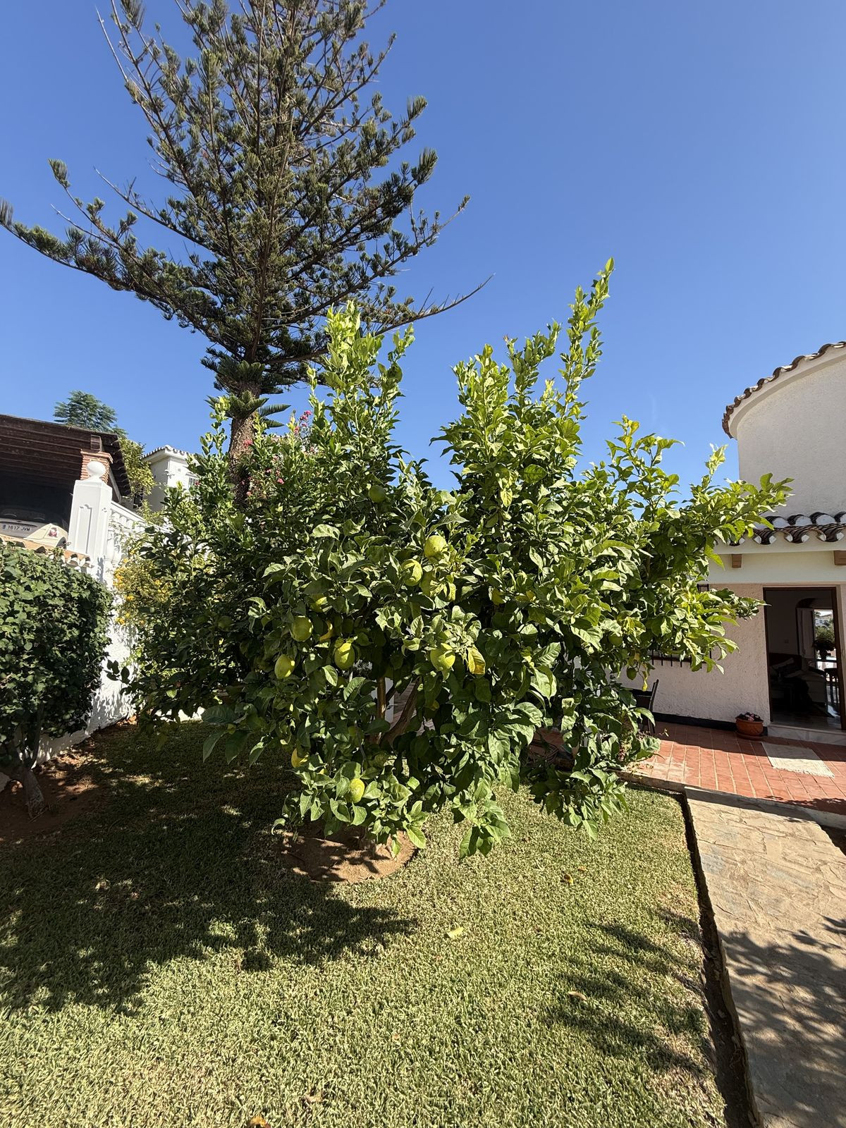À l'extérieur, vous découvrirez de jolis jardins bien entretenus avec des citronniers matures ; à l'arrière de la propriété se trouvent la piscine et le solarium, très privés, où vous pourrez vous détendre en toute intimité.