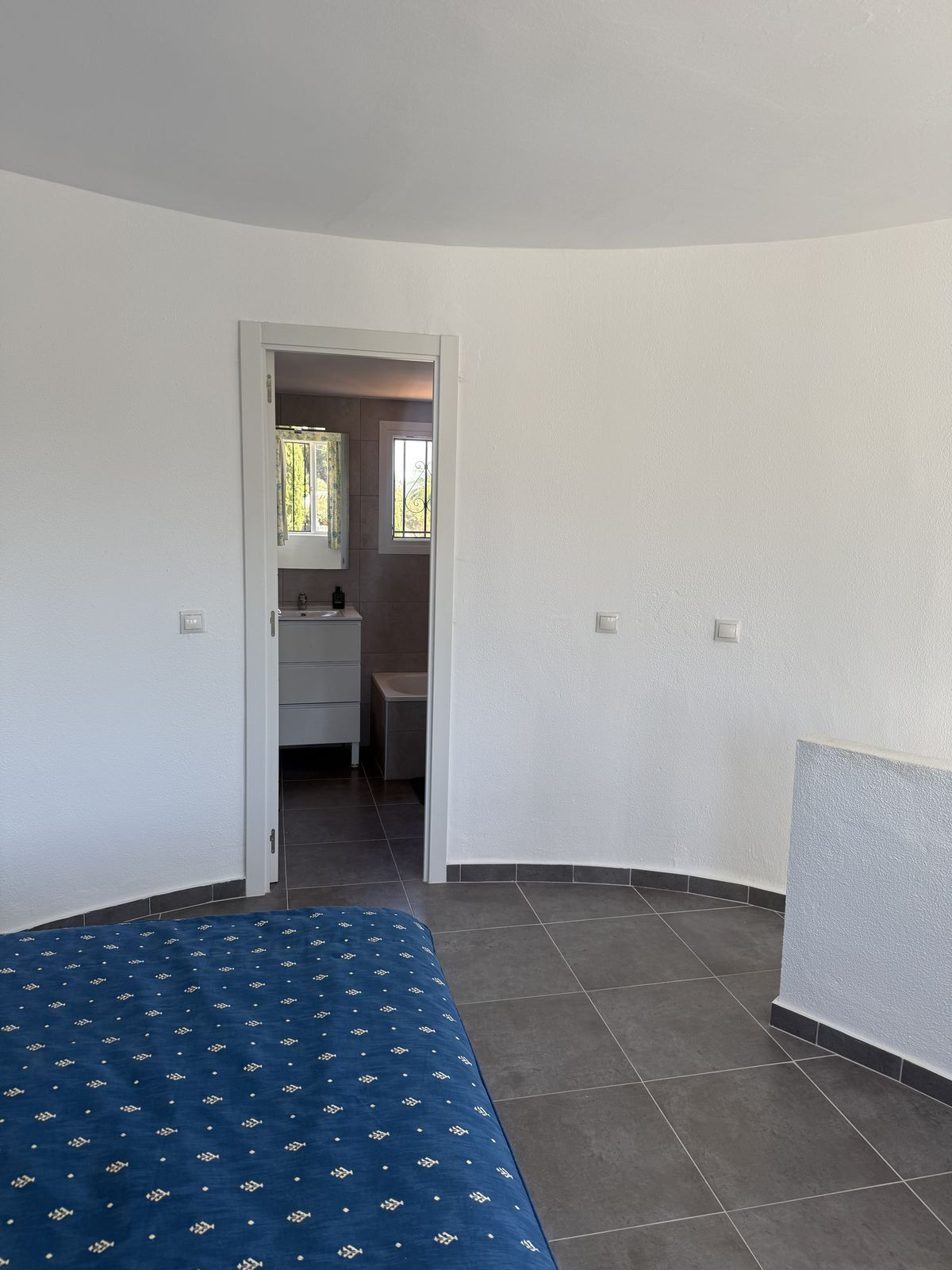Au premier étage se trouvent la chambre principale et la salle de bains attenante récemment rénovée, offrant toutes deux une vue spectaculaire sur la mer.