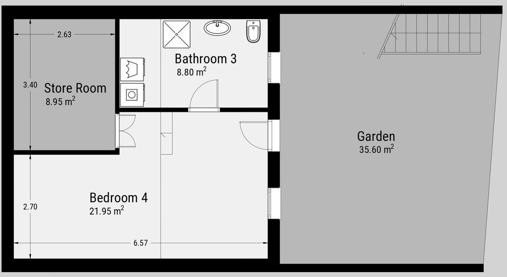 Le sous-sol offre un espace de vie supplémentaire, comprenant un coin salon confortable, un espace nuit, une salle de bain complète et un espace de rangement — idéal pour les invités, les adolescents ou comme bureau à domicile.