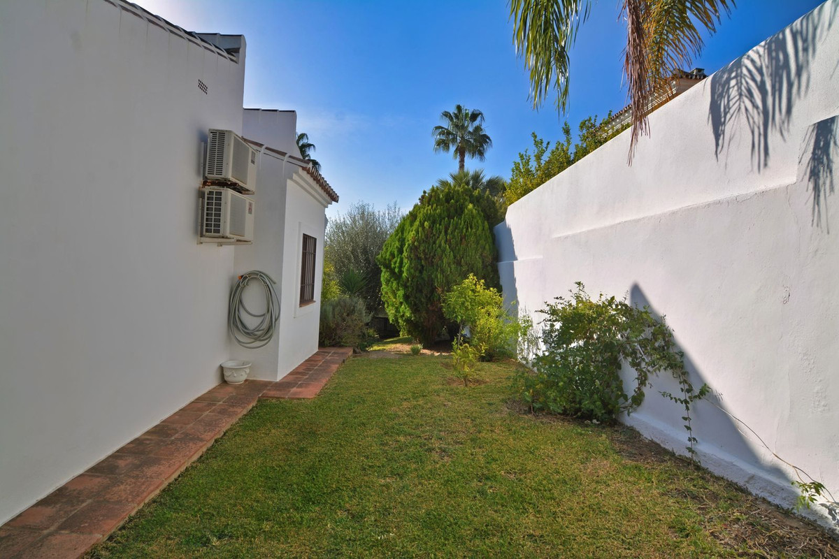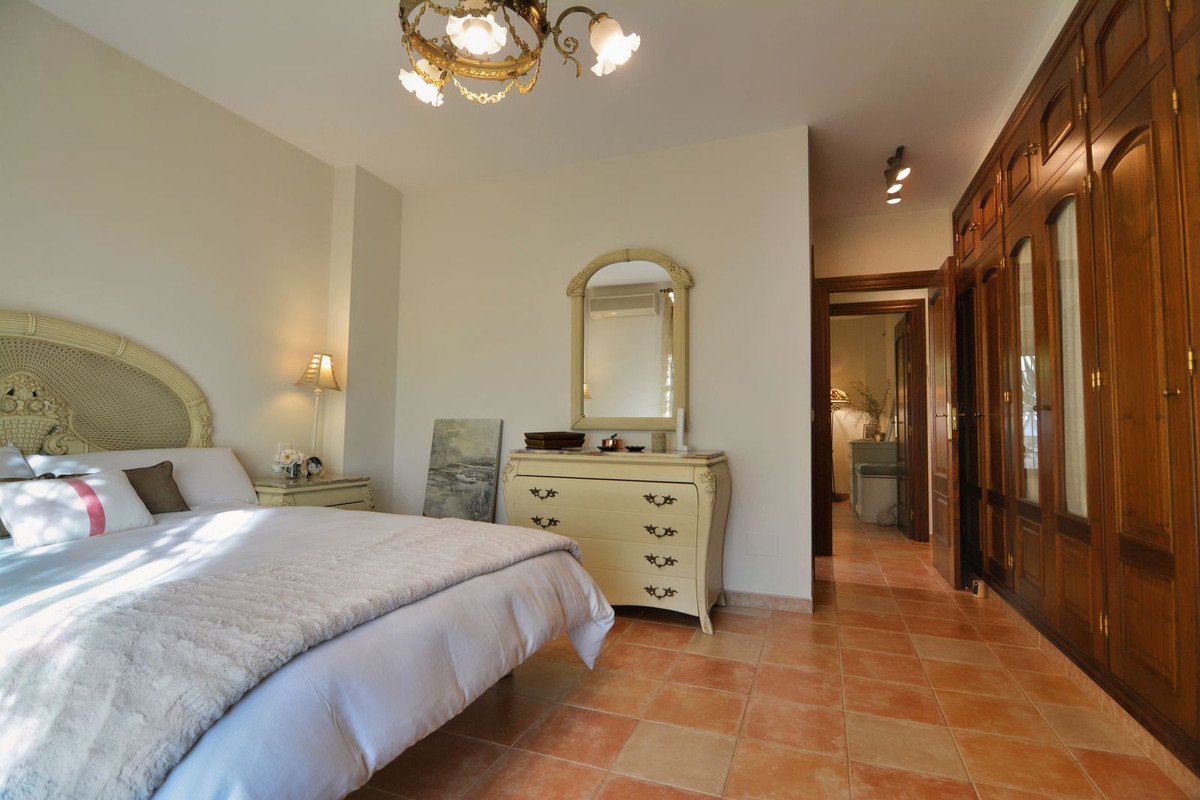 La propriété se situe sur un terrain de 858 m² avec un jardin arboré et une piscine privée, idéal pour profiter du climat ensoleillé de la Costa del Sol. Au rez-de-chaussée, un séjour spacieux et lumineux, donnant directement sur une véranda couverte, invite à la détente et aux moments conviviaux en plein air. La cuisine indépendante, grande et fonctionnelle, s'ouvre sur une charmante terrasse arrière, parfaite pour les petits-déjeuners ensoleillés. Ce niveau comprend également des toilettes invités.