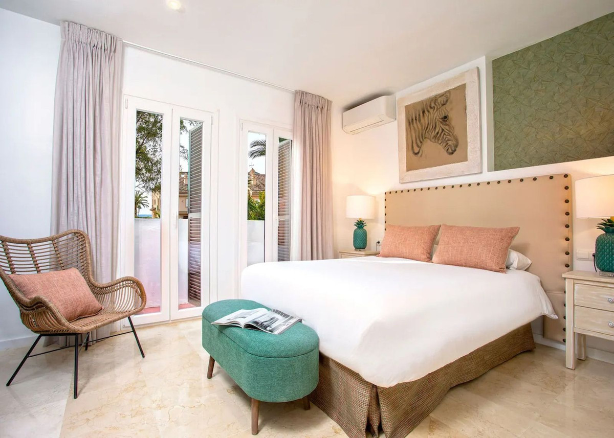 À quelques pas de la mer, cette maison de ville magnifiquement rénovée est située dans le quartier très prisé de Laguna Beach à Estepona.
