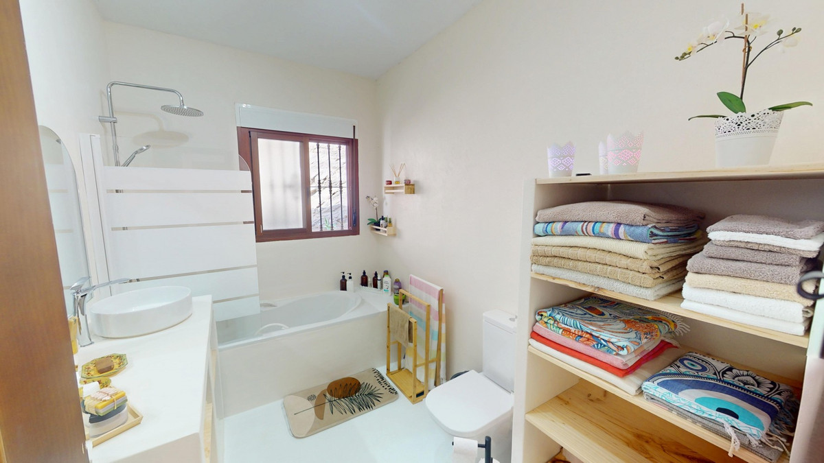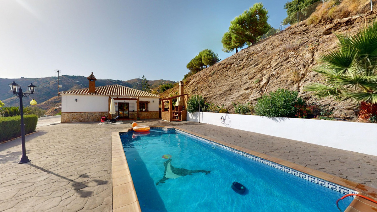 Nichée dans les magnifiques collines d'Arenas, cette charmante propriété offre des vues imprenables sur les montagnes et la mer Méditerranée. C'est le refuge idéal pour ceux qui recherchent la tranquillité, la nature et le style de vie andalou. La maison comprend trois chambres confortables et une salle de bain impeccable. La cuisine est entièrement équipée et offre tout le nécessaire pour préparer de délicieux repas tout en profitant du cadre exceptionnel. Une terrasse spacieuse invite à la détente en plein air, aux bains de soleil et aux repas avec vue. La piscine privée offre une fraîcheur bienvenue lors des chaudes journées d'été. La climatisation assure un confort optimal à l'intérieur, toute l'année. Située sur un vaste terrain planté d'oliviers centenaires, cette propriété offre espace, intimité et un charme rustique. La combinaison de la vue sur la mer, du calme et de la nature fait de cette maison un havre de paix unique. Nous sommes ravis de pouvoir vous présenter prochainement cette propriété de rêve, en personne ou par visite virtuelle. Car ce monde est unique, à l'image de notre Axarquía. En Andalousie. Sur la Costa del Sol. Ici, sous le soleil de la vie...