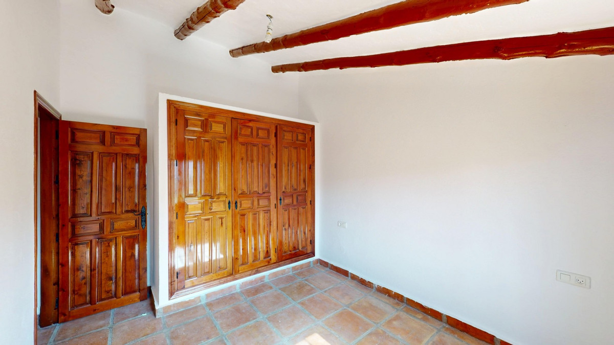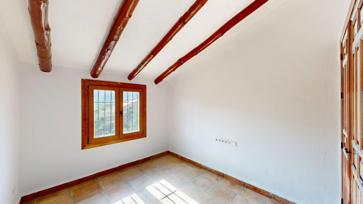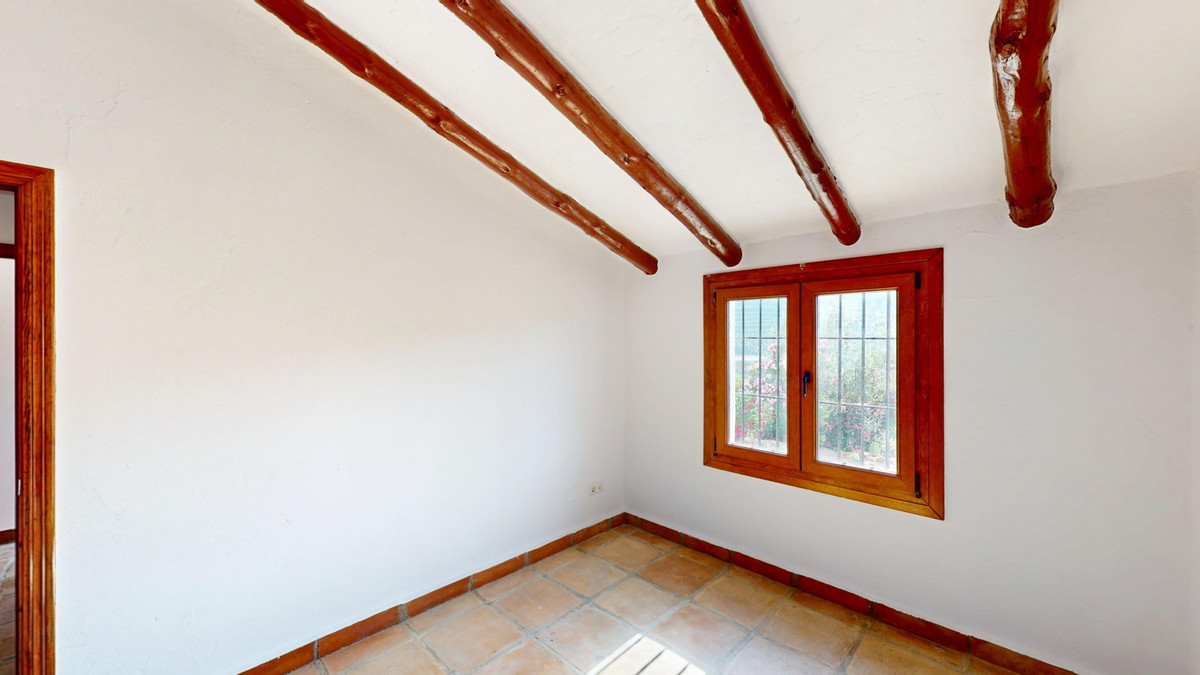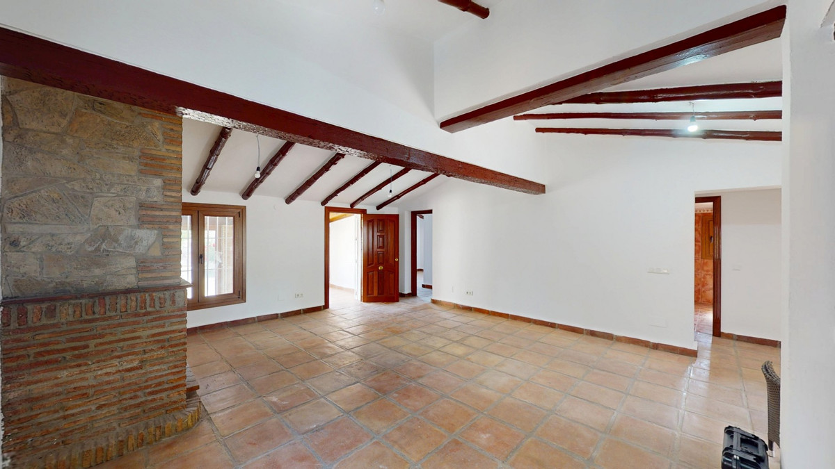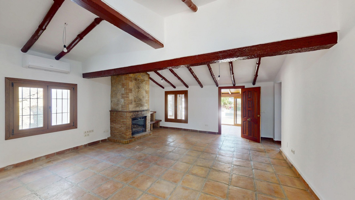 This delightful Spanish villa, located in Viñuela, Málaga, offers a perfect blend of traditional charm and modern comfort. The single-story property spans 167 m2 and features three bedrooms, including a spacious 13.9 m2 primary bedroom, and two bathrooms. Upon entering, you're greeted by the home's most striking feature: beautiful terracotta tile flooring that runs throughout, creating a cohesive and authentic Spanish ambiance. The living areas are characterized by their high, sloping ceilings with exposed wooden beams, adding rustic charm and visual interest to the space. The heart of the home is undoubtedly the living room, which boasts a magnificent stone fireplace as its centerpiece. Large windows and glass doors in this area, as well as in the bedrooms, allow ample natural light to flood the interiors while offering picturesque views of the surrounding landscape. The kitchen presents a harmonious blend of traditional and contemporary design. Modern appliances and sleek cabinetry are juxtaposed against the rustic ceiling beams, creating a functional yet aesthetically pleasing culinary space. The bathrooms, while not extensively detailed in the images, appear to have been updated with modern fixtures. Storage is thoughtfully incorporated throughout the home, with built-in wooden wardrobes in the bedrooms that maintain the overall rustic aesthetic. The property also features two patios, offering delightful outdoor spaces for relaxation and entertainment. A unique aspect of this villa is its attention to decorative details, such as the ornate tile borders in the hallways and bathrooms, which add a touch of traditional Spanish flair to the otherwise simple and elegant interiors. Outside, the villa boasts a beautiful pool and a charming outdoor area perfect for enjoying the  Mediterranean climate. Overall, this Málaga villa offers a warm, inviting atmosphere that beautifully marries traditional Spanish architectural elements with modern comforts, creating a truly special living space. We are pleased to be able to present this dream property to you soon, either personally or via virtual viewing. Because this world is unique - just like our Axarquía. In Andalusia. On the Costa del Sol. Here, on the sunny side of life...